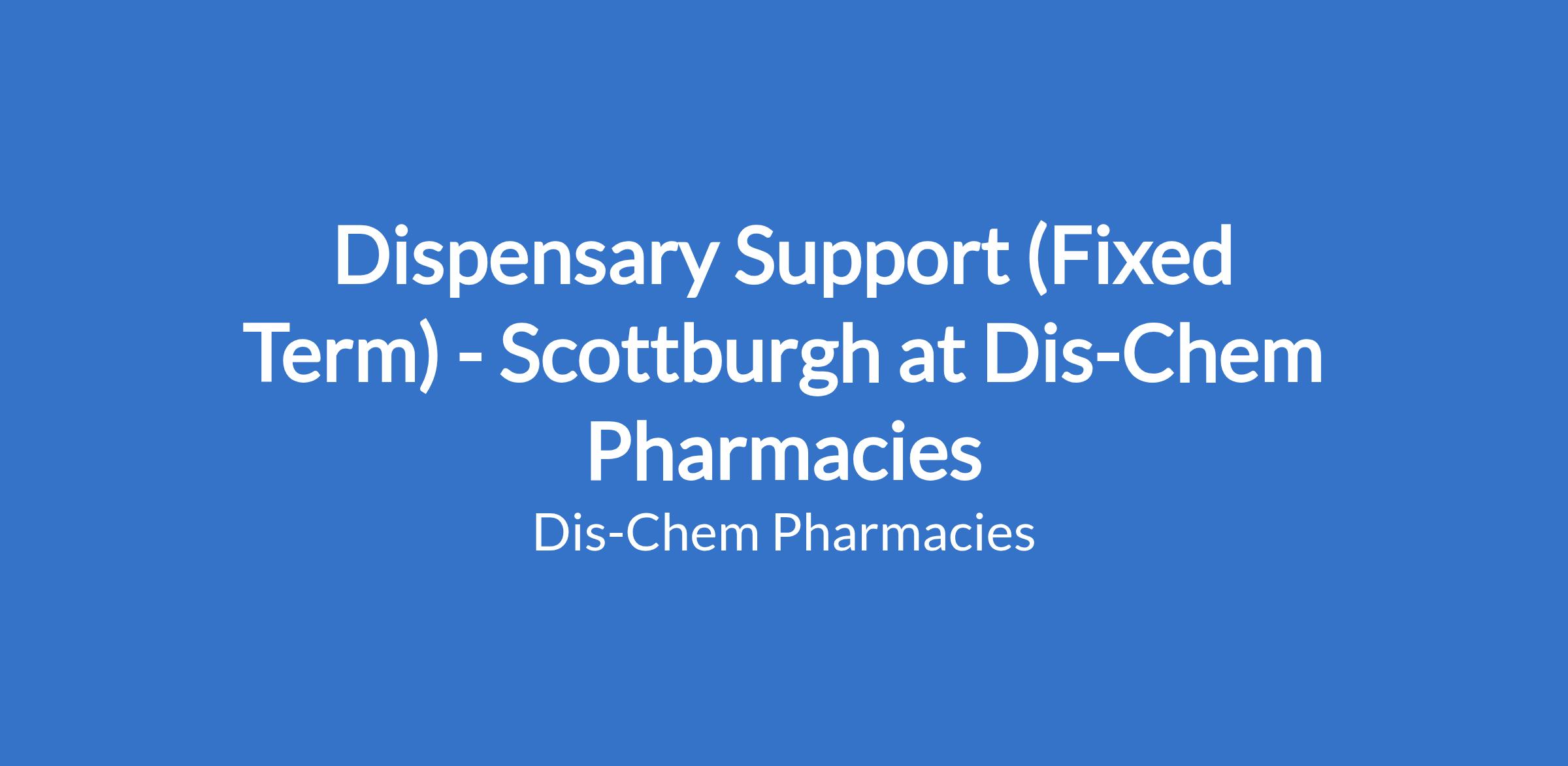 Dis-Chem Pharmacies Scottburgh store has an opportunity available for a Dispensary Support to join the team. The main purpose of this is to employ learners who are capable of doing and completing the learner basic pharmacist assistant course.