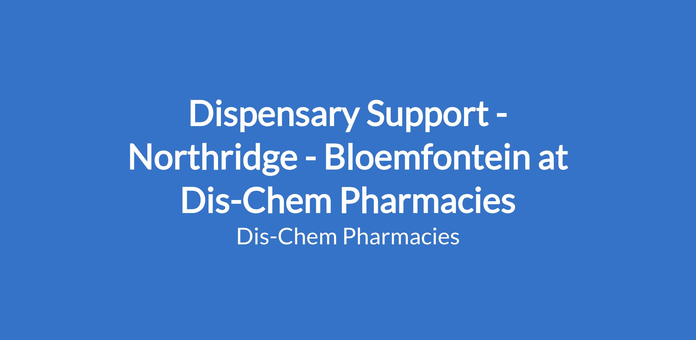 Dis-Chem Pharmacies' Northridge store has an opportunity available for a Dispensary Support to join the team. The main purpose of this is to employ learners who are capable of doing and completing the learner basic pharmacist assistant course.
