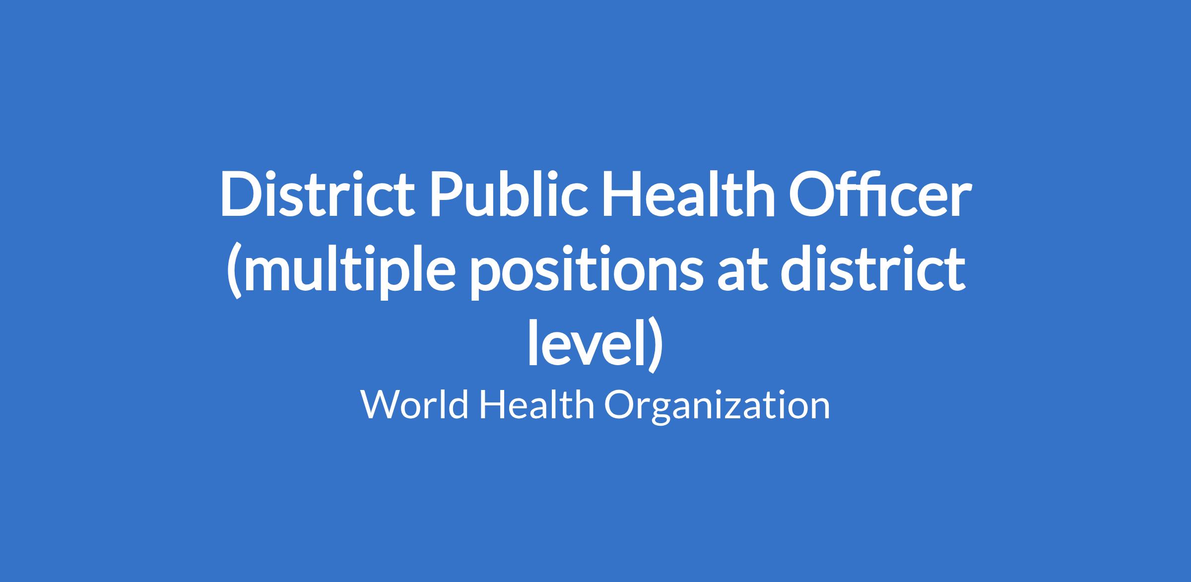 The Public Health Officer (PHO) position is the primary WHO operational presence at district(s) level, responsible for integrated delivery of polio surveillance and Supplementary immunization activities (SIAs) as the highest priority, followed by VPD outbreak detection and response, routine immunization (EPI), and public health emergency functions. This position ensures direct linkage between communities, district health authorities and WHO Somalia.