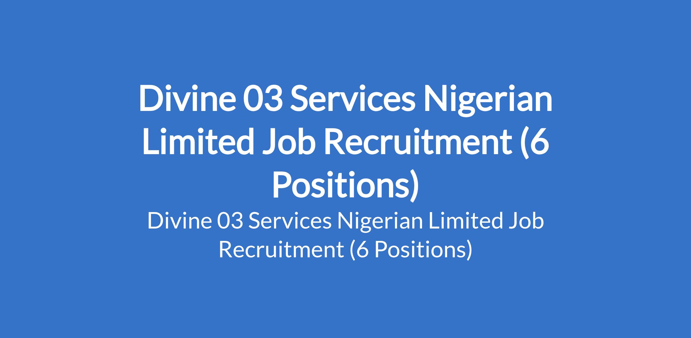 Divine 03 Services Nigerian Limited is recruiting suitably qualified candidates to fill the following positions in Lagos State: Digital Marketing Director, Customer Service Representative, Brand Manager, Chief Marketing Officer, Administrative Officer and HR Manager.
