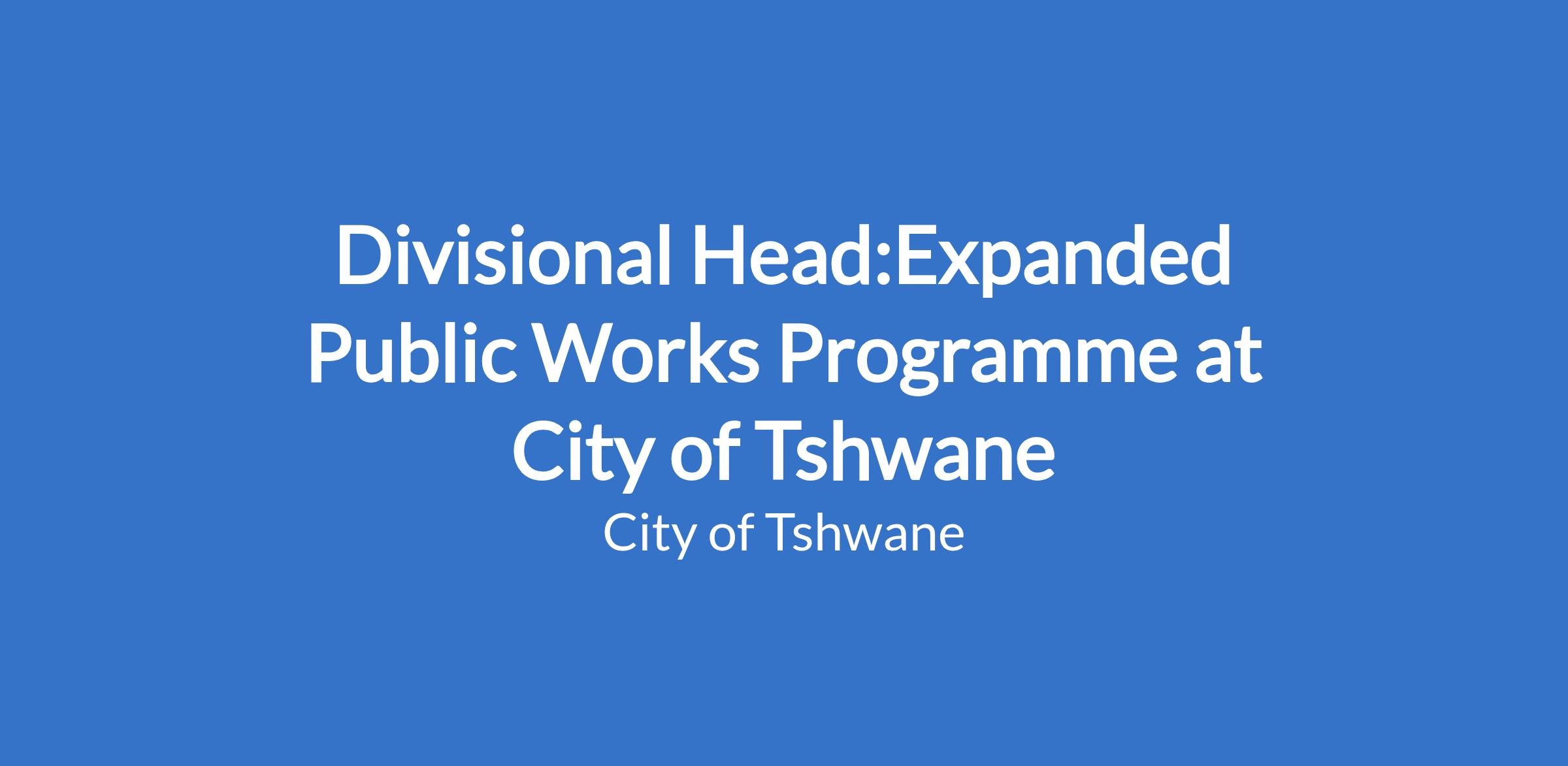 Divisional Head:Expanded Public Works Programme at City of Tshwane