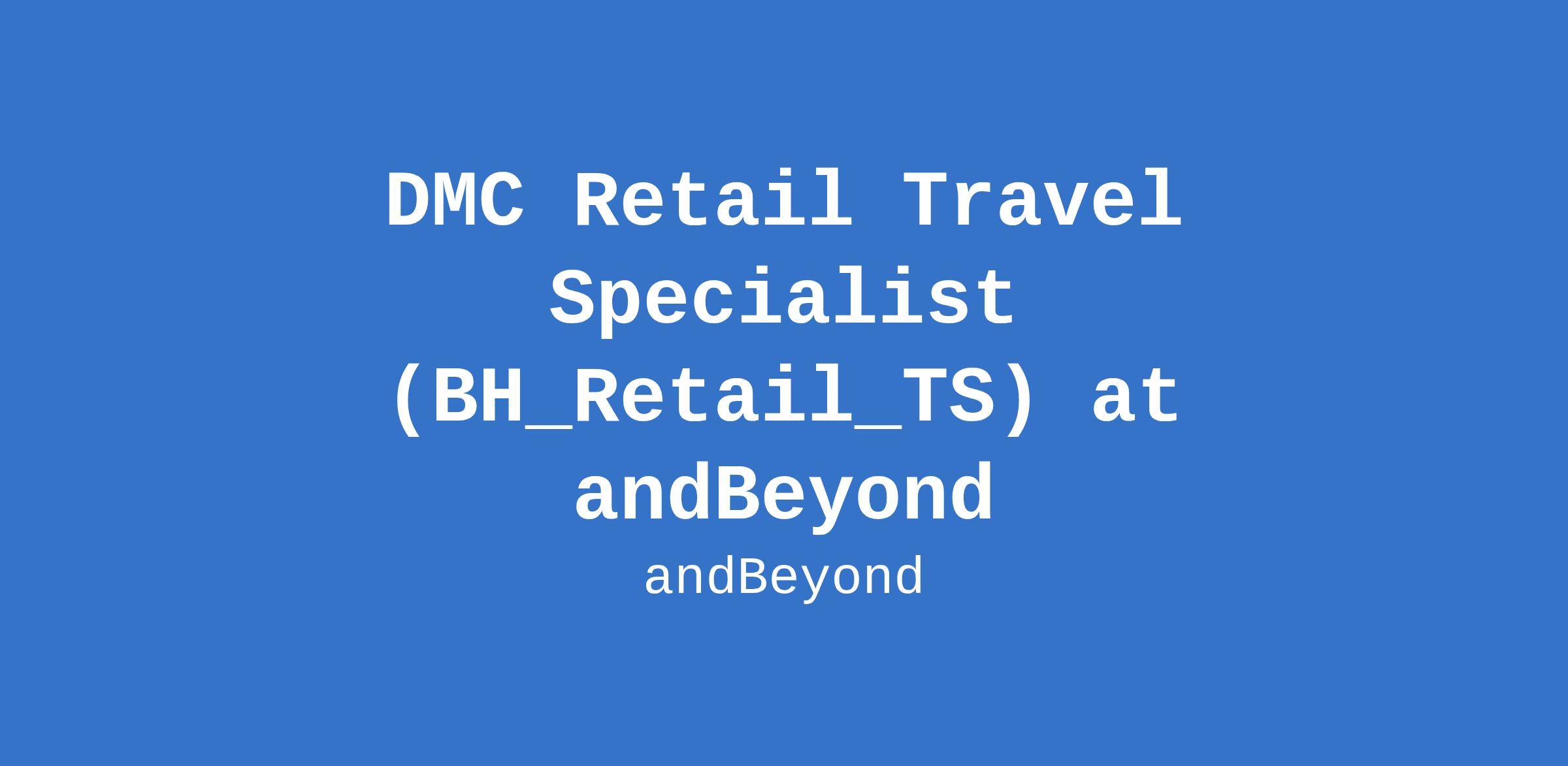 DMC Retail Travel Specialist (BH_Retail_TS) at andBeyond
