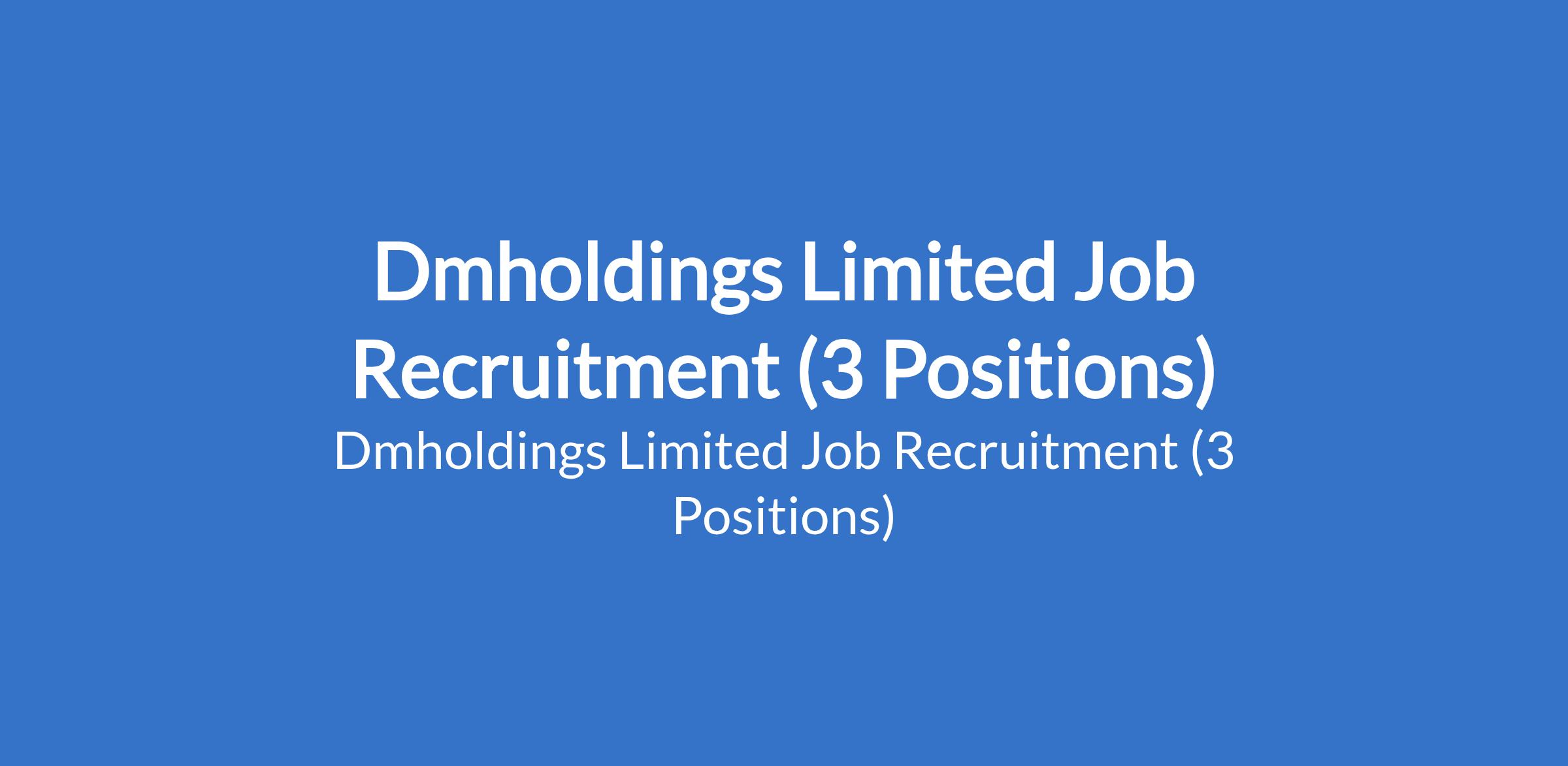 Dmholdings Limited is recruiting suitably qualified candidates to fill the following positions in Lagos State: Finance Manager, Cleaner, and Driver.