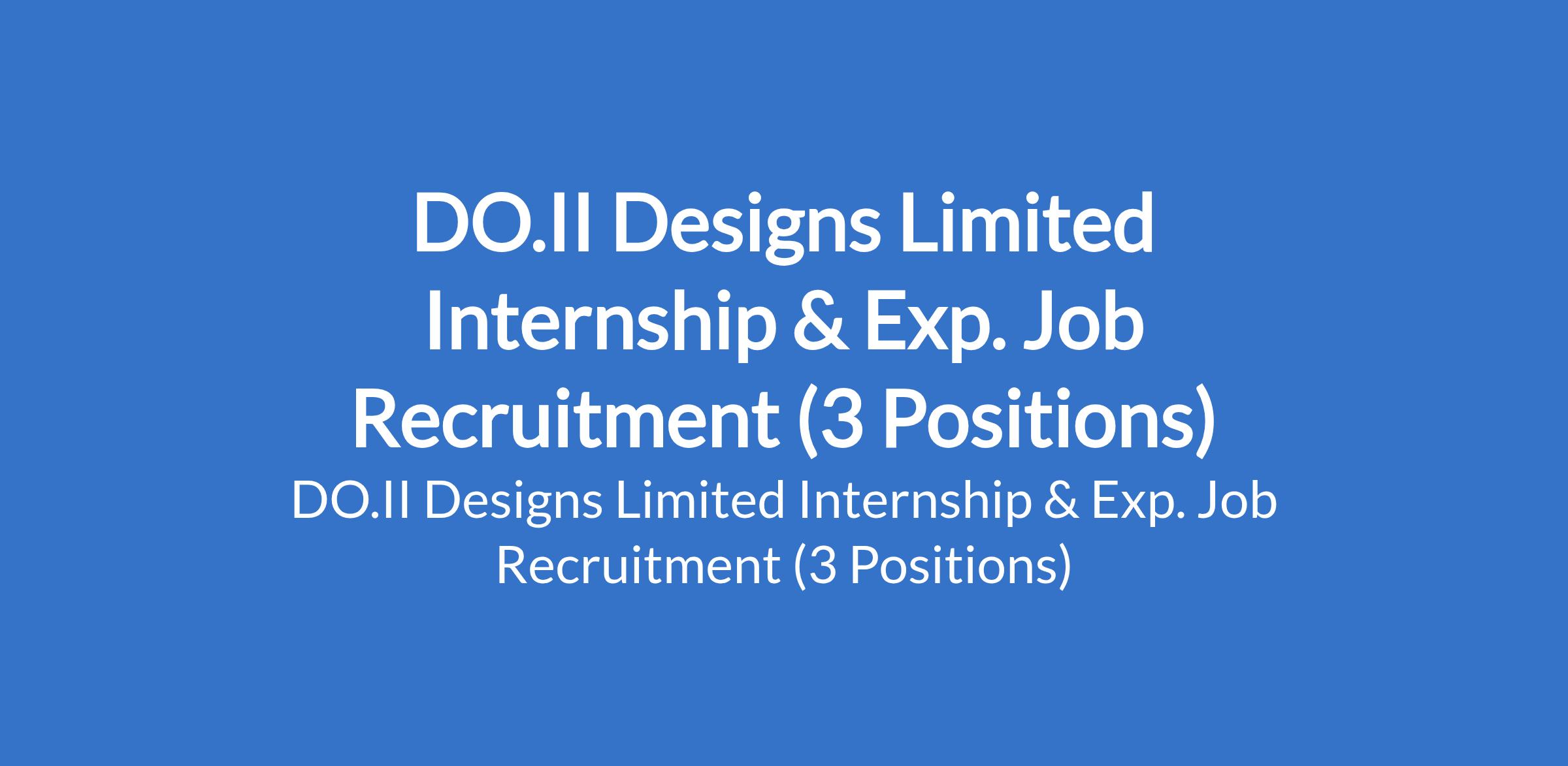 DO.II Designs Limited Internship & Exp. Job Recruitment (3 Positions)