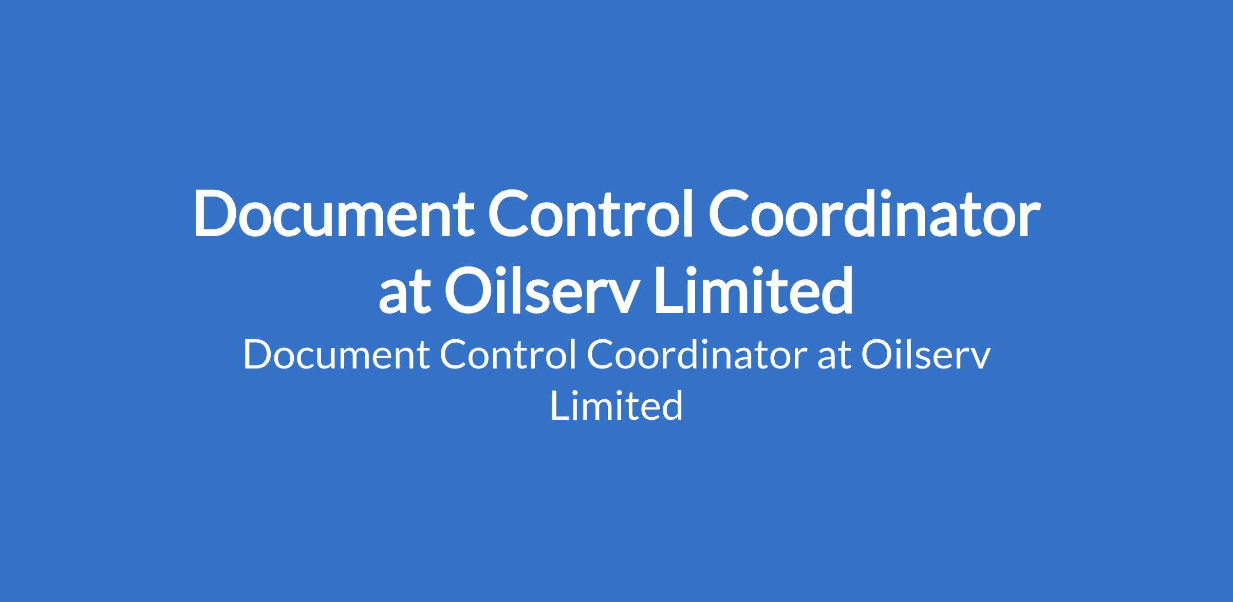 Oilserv Limited is recruiting to fill the position of: Document Control Coordinator. The position is located in Rivers State. The Document Control Coordinator is a Project team member and administratively in charge of the Document Control unit/ Project department and is responsible for leadership, direction, management, and performance of a Document controls Unit. Interested candidates should possess relevant qualifications.
