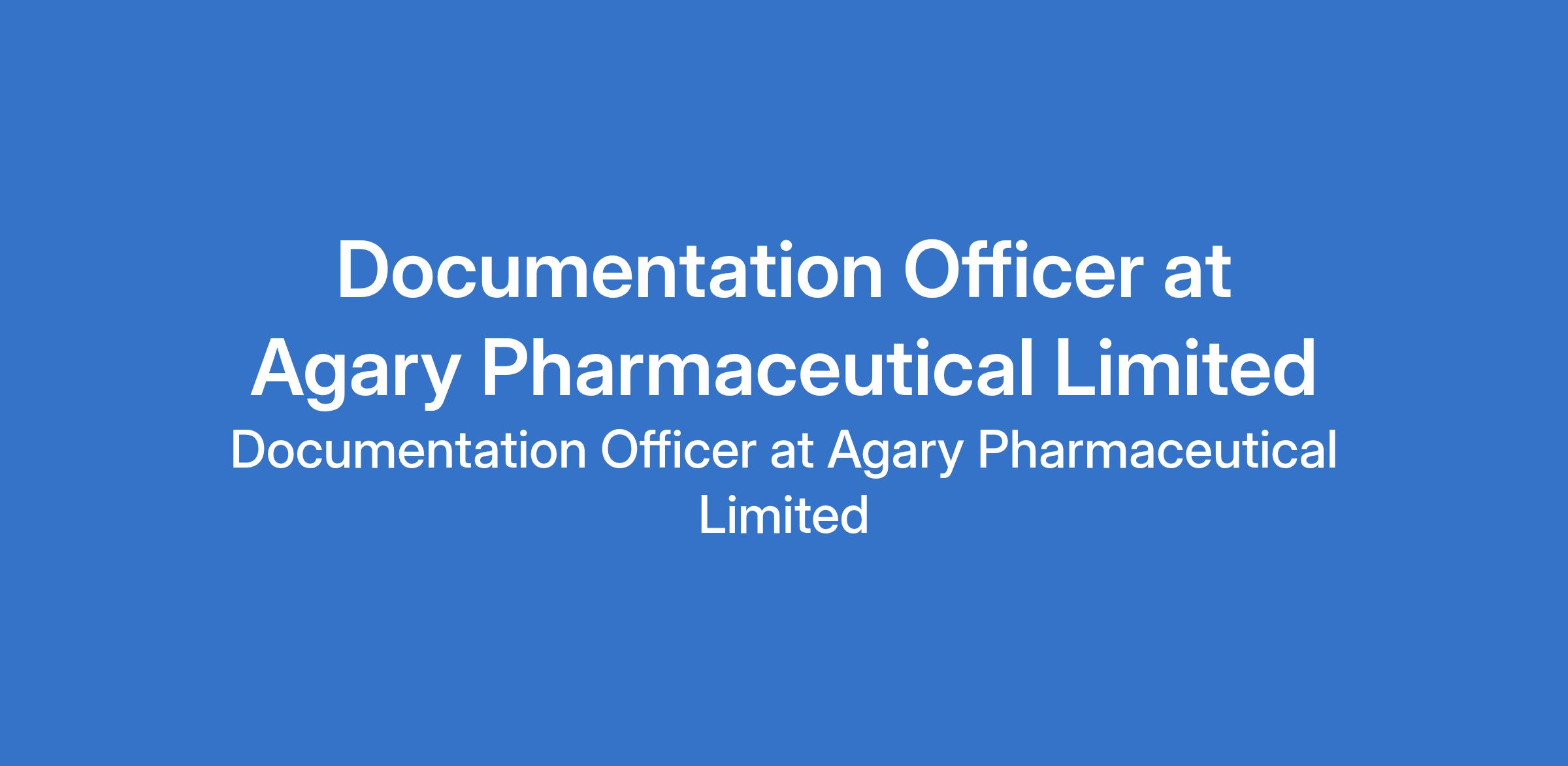 Agary Pharmaceutical Limited is recruiting to fill the position of: Documentation Officer. The position is located in Lagos State. Interested candidates should possess an HND / BSc Degree in Information Management, Administration, or related fields with 3 - 5 years experience in documentation in a pharmaceutical.