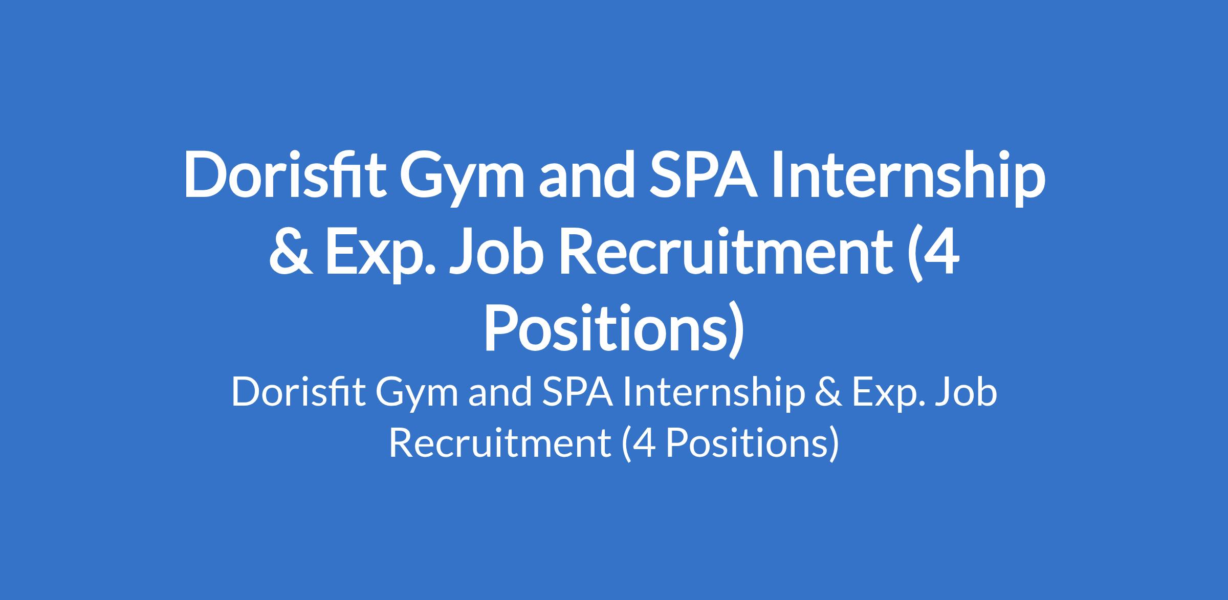 Dorisfit Gym and SPA Internship & Exp. Job Recruitment (4 Positions)