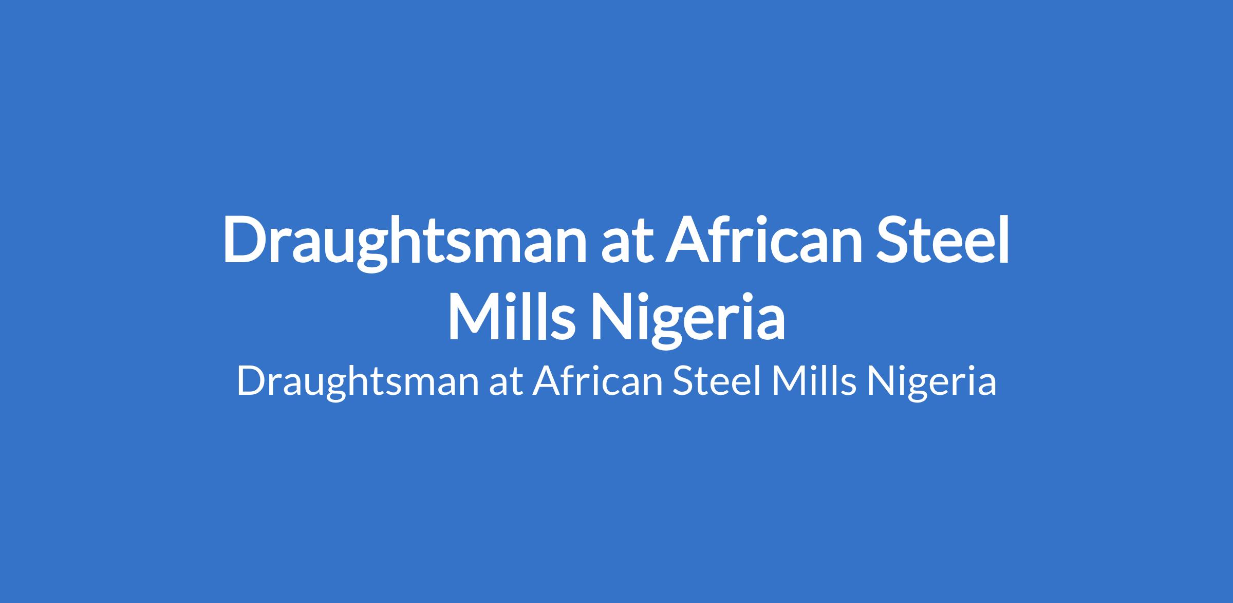 African Steel Mills Nigeria is recruiting to fill the position of: Draughtsman. The position is located in Lagos State. Interested candidates should possess a Diploma or Certificate in Drafting, Civil Engineering, Architecture, or Mechanical Engineering with 13 years of experience in drafting or design support.