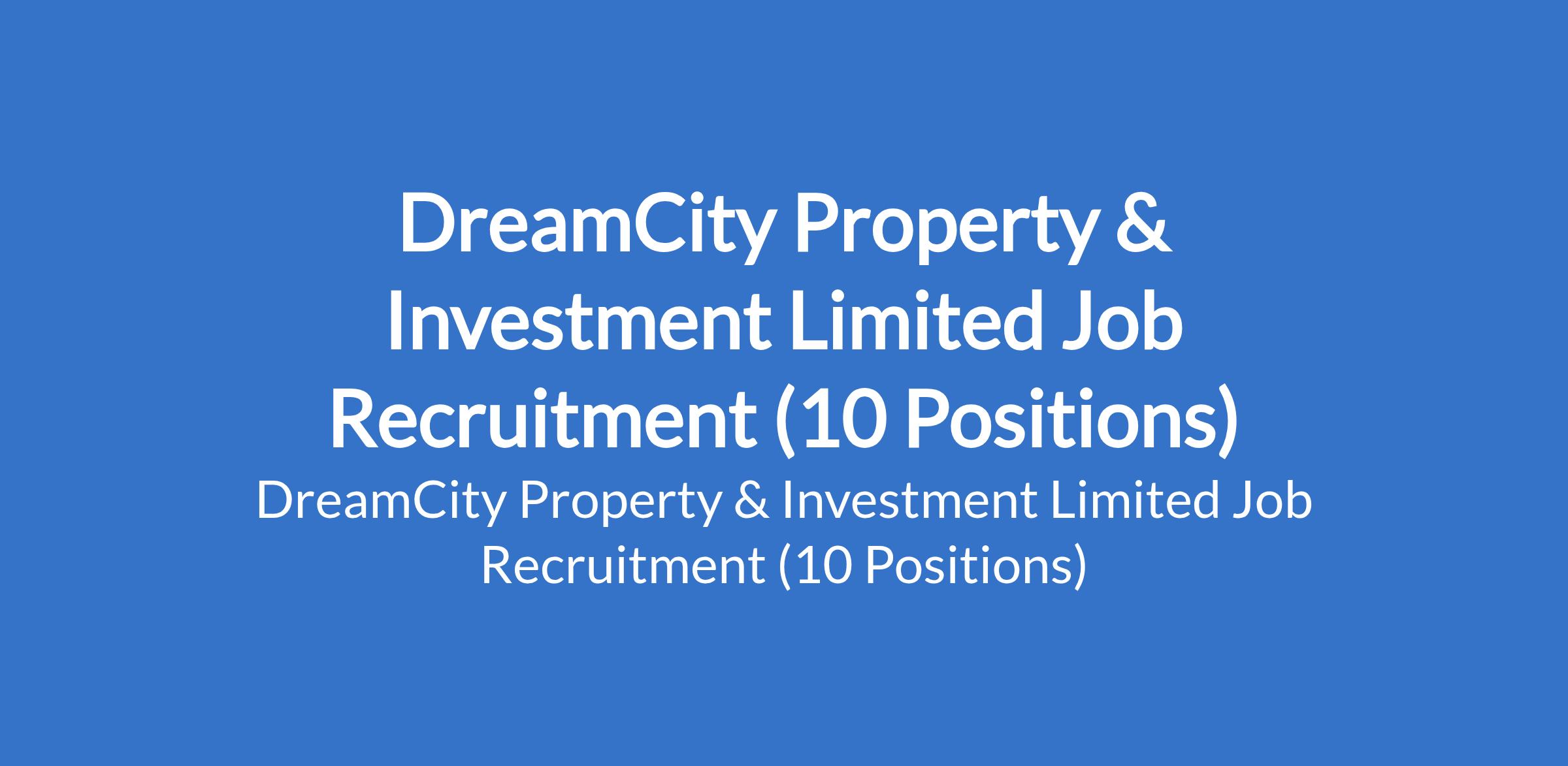 DreamCity Property & Investment Limited is currently recruiting suitably qualified candidates to fill the following positions in Abuja (FCT) and Lagos State: General Manager, Operations/Business Development, Human Resources & Administration Manager, Architect, Projects Supervisor, Chief Operating Officer (COO), Sales Team Lead, and General Manager - Operations / Business Development.