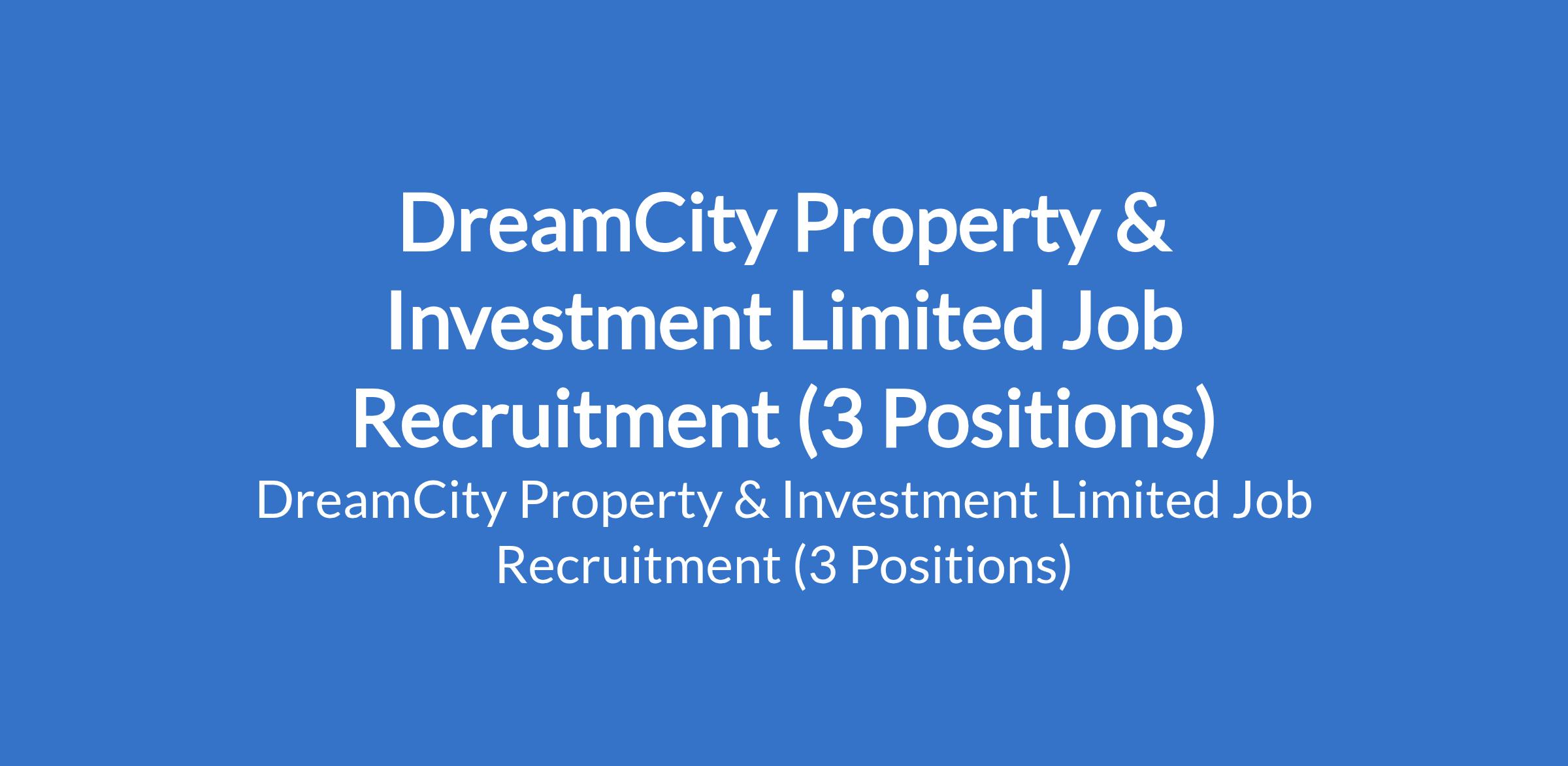 DreamCity Property & Investment Limited is currently recruiting suitably qualified candidates to fill the following positions in Abuja (FCT) and Lagos State: Chief Operating Officer (COO), Sales Team Lead, and General Manager - Operations / Business Development.