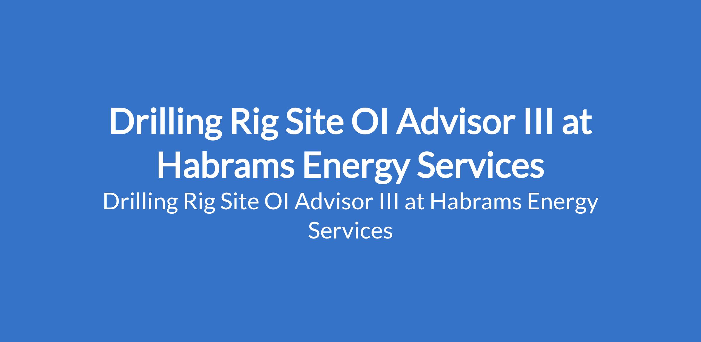 Habrams Energy Services is recruiting to fill the position of: Drilling Rig Site OI Advisor III. The position is located in Lagos State. Interested candidates should possess a Bachelors Degree in Occupational Safety & Health preferred and/or previous experience in a closely related position.