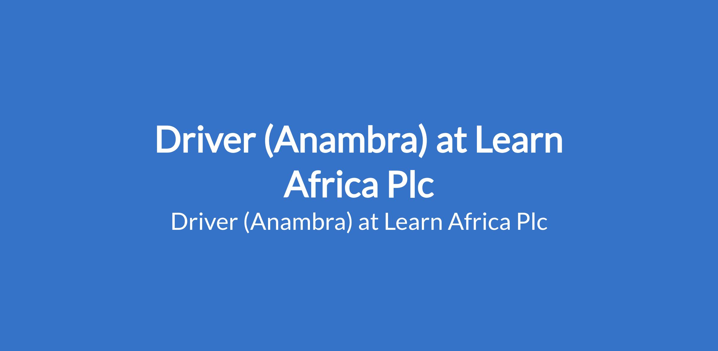 Learn Africa Plc is recruiting to fill the position of: Driver. The position is located in Onitsha, Anambra State. Interested candidates should possess an SSCE / OND qualification with a minimum of 3 years driving experience and a valid driver license.