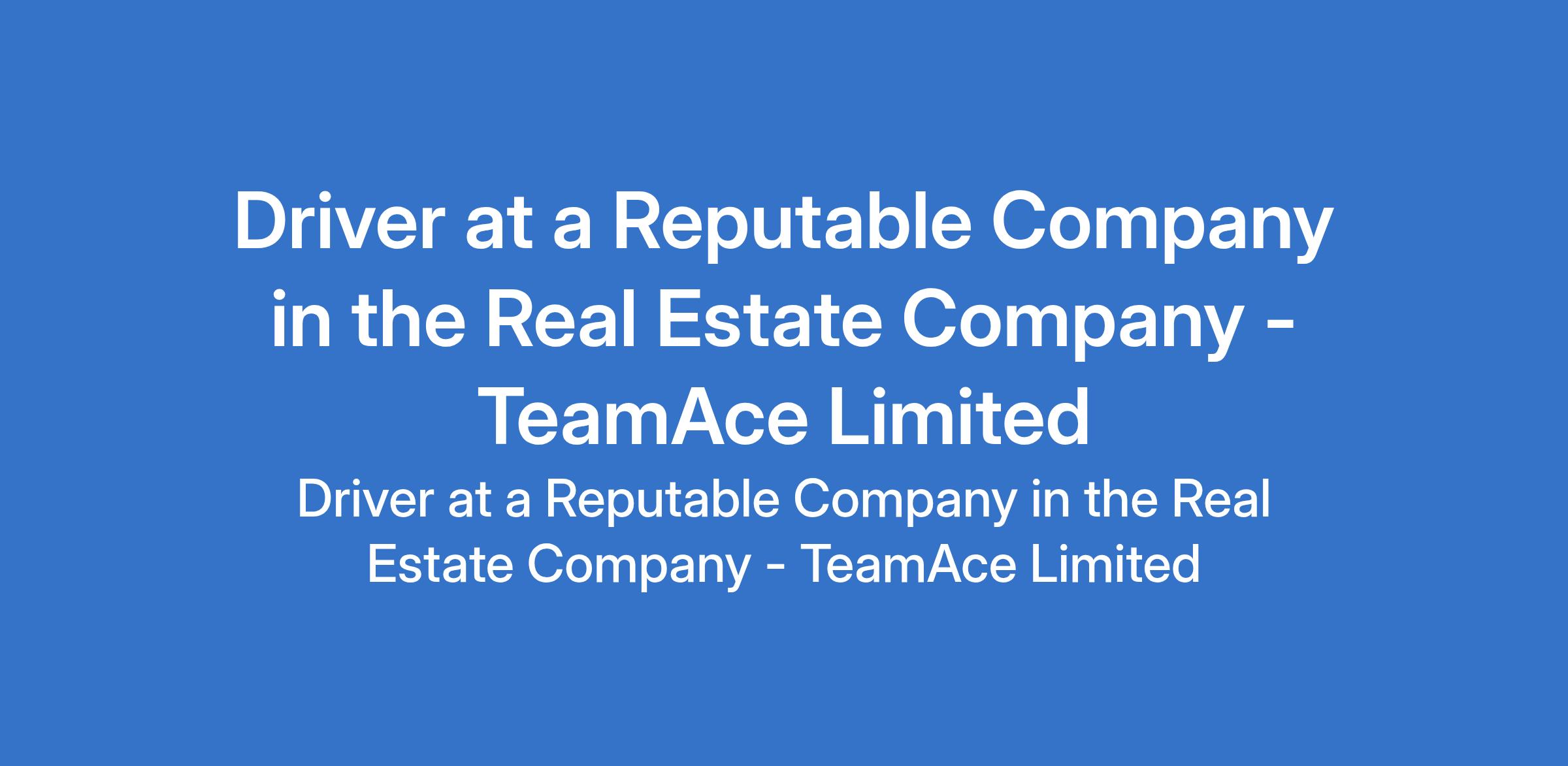 TeamAce Limited - Our client, a Reputable company in the real estate sector is recruiting to fill the position of: Driver. The position is located in Magodo, Lagos State. Salary: N120,000 - N150,00 / month. Interested candidates should possess relevant qualifications with 2 3 years of experience as a professional driver.