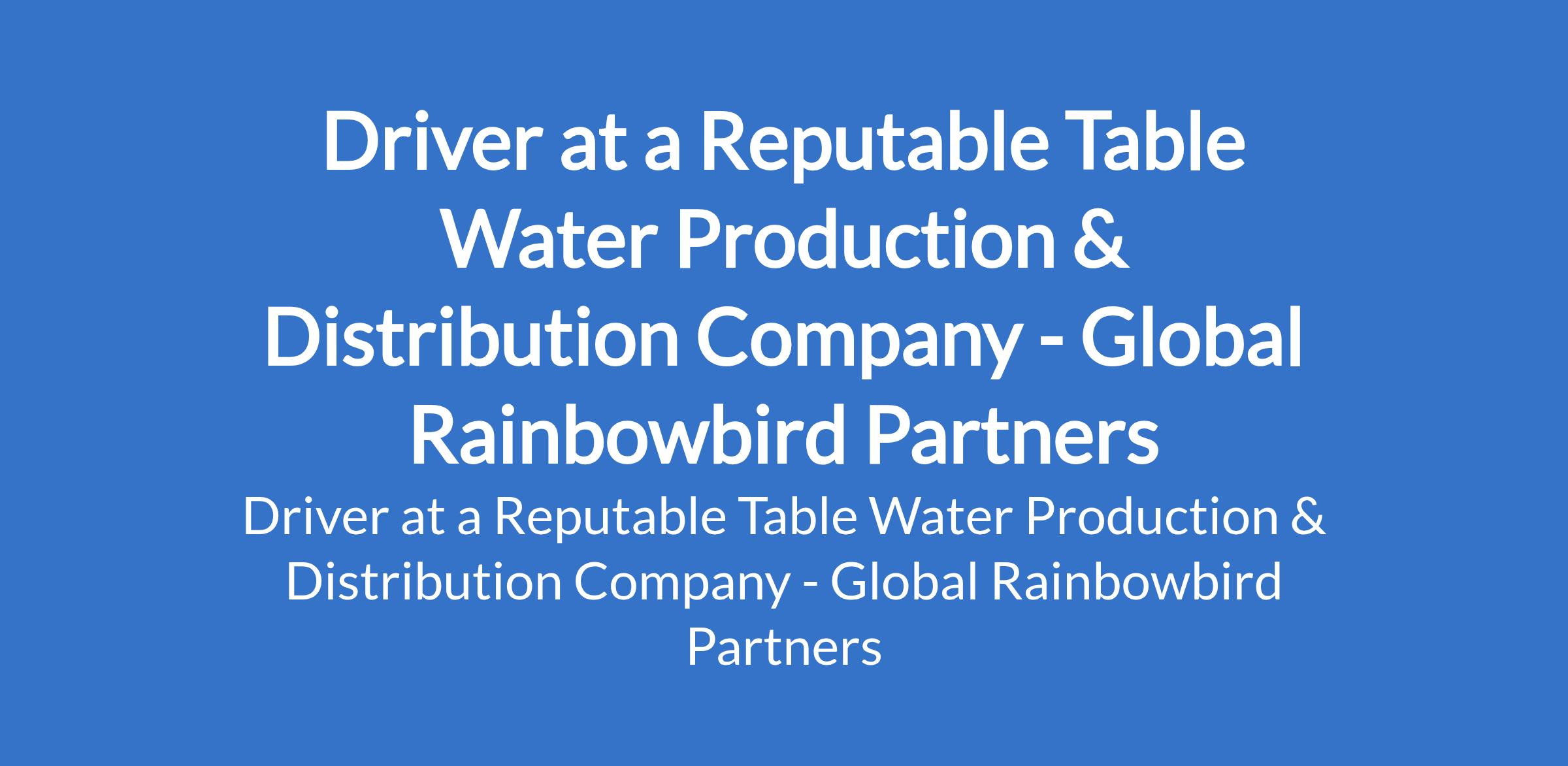 Global Rainbowbird Partners - Our client, a reputable table water production & distribution company is recruiting to fill the position of: Driver (Bottled Water Company). The position is located in Ilasamaja / Sadiku - Lagos State. Salary: N100,000 - N150,000 monthly. Interested candidates should possess minimum of an SSCE qualification with at least 2 years practical driving experience in Lagos and must be ready to resume immediately.