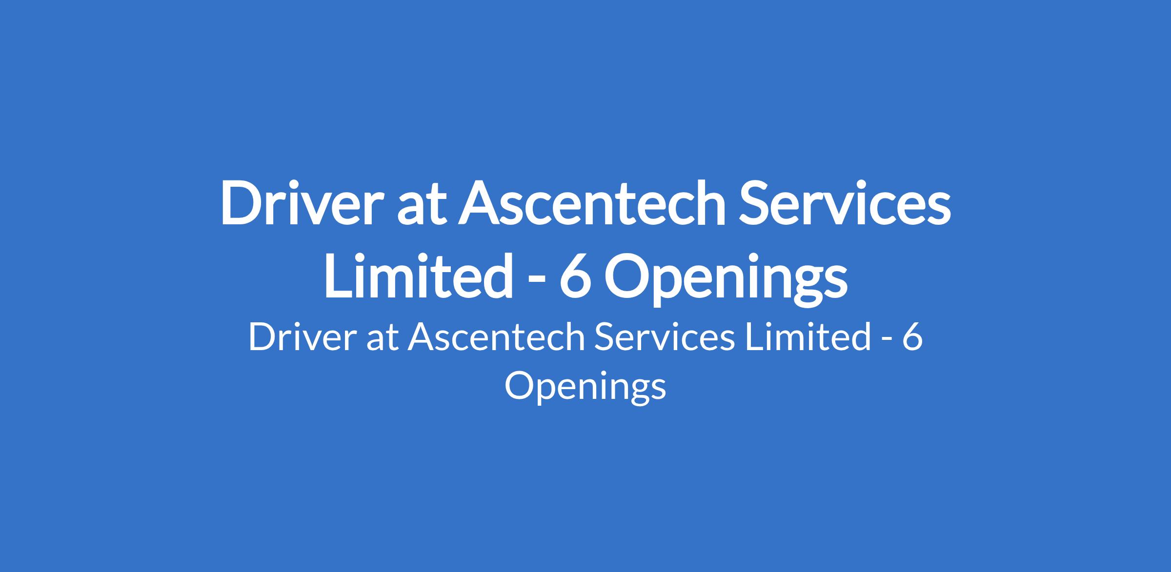 Ascentech Services is recruiting to fill the position of: Driver. The position is located in Isolo, Lagos State. Salary: N100,000 - N120,000 monthly. Interested candidates should possess a minimum of SSCE qualification with 24 years driving experience and a valid drivers license.