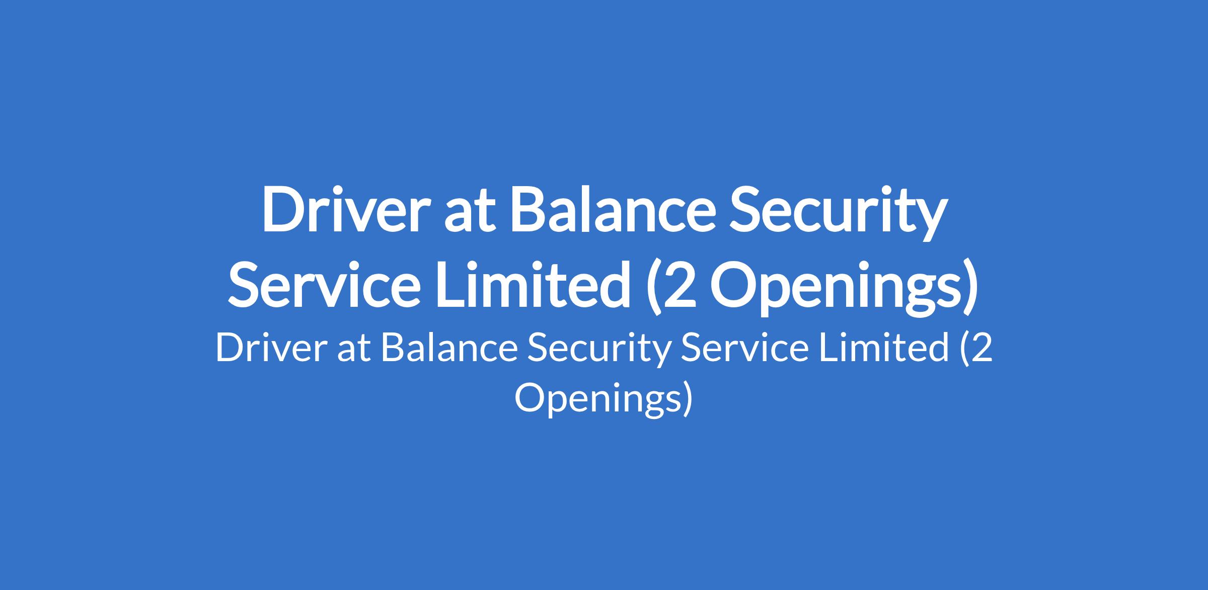 Driver at Balance Security Service Limited (2 Openings)