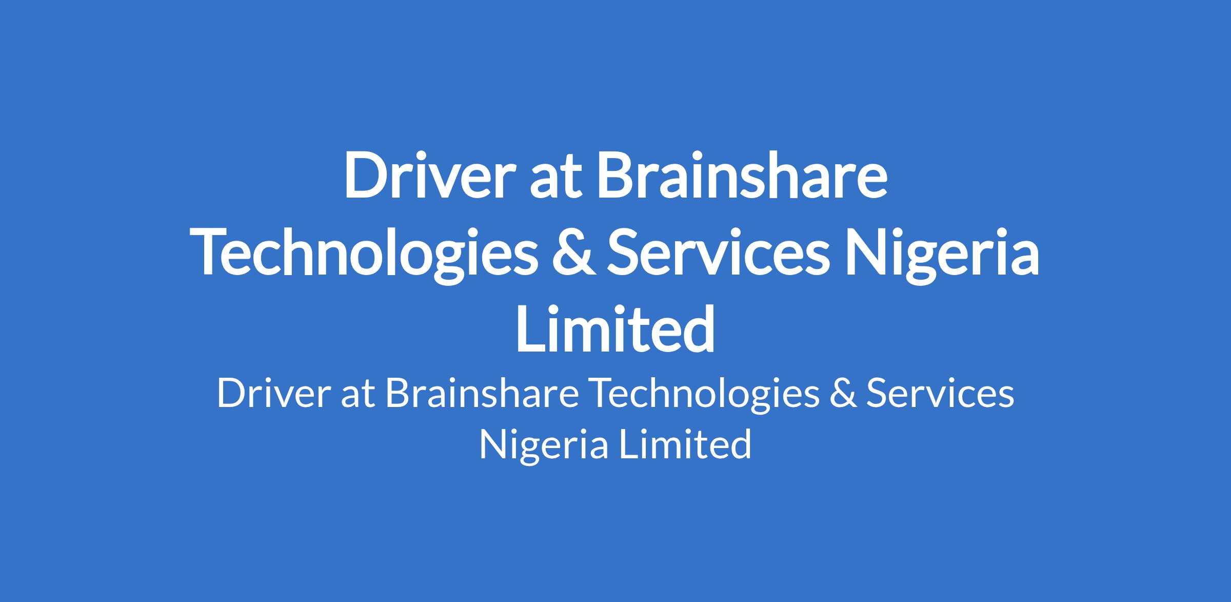 Brainshare Technologies & Services Nigeria Limited is recruiting to fill the position of: Driver. The position is located in Lekki Phase 1, Lagos State. Interested candidates should possess relevant qualifications and must be living around Lekki Phase axis.