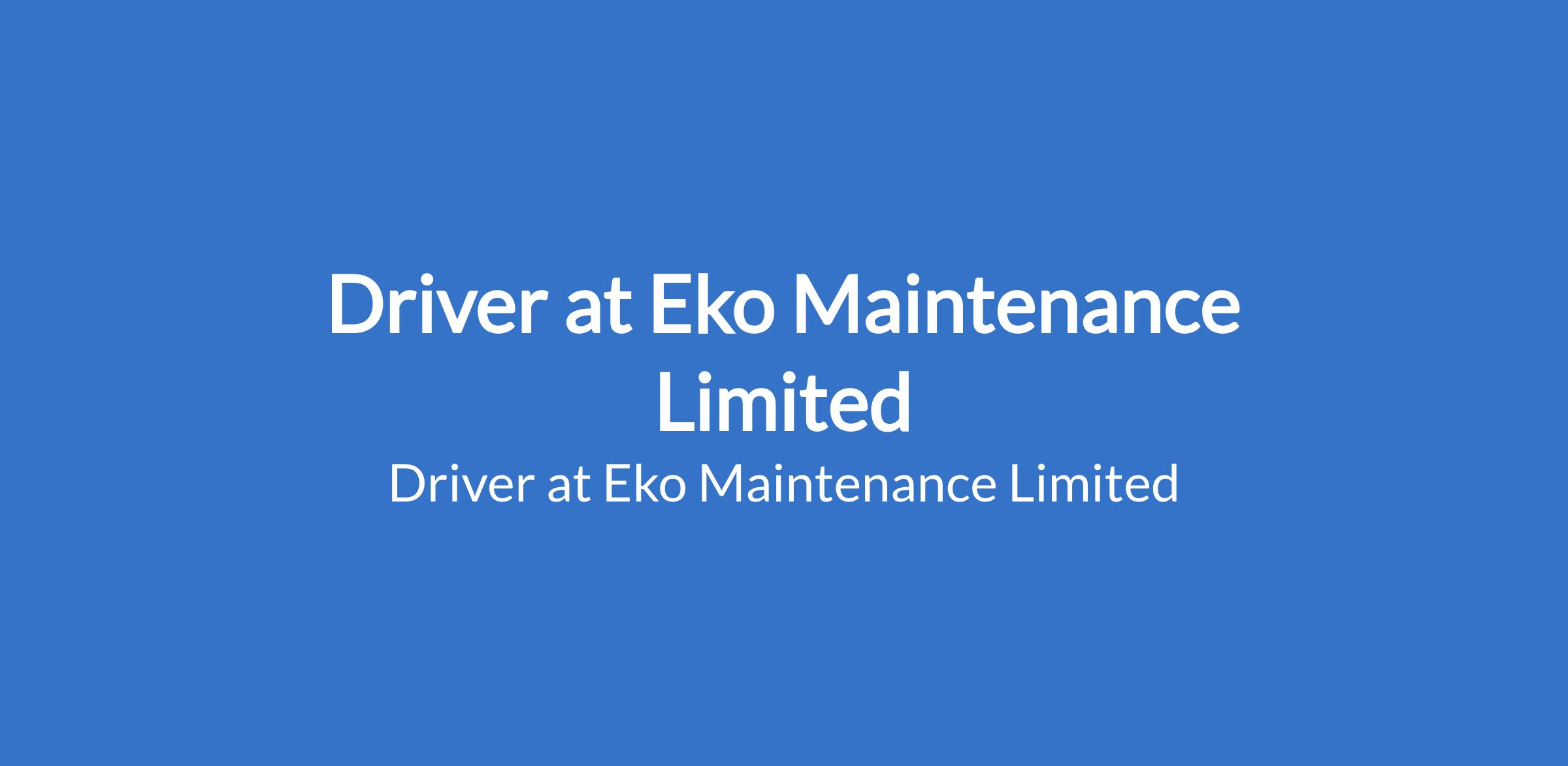 Eko Maintenance Limited is recruiting to fill the position of: Driver. The position is located in Victoria Island, Lagos State. Salary: N130,000 - N150,000 monthly. Interested candidates should possess an SSCE / OND qualification, a Valid Nigerian drivers license / LASDRI Card, with 3 - 7 years of working experience as a driver, and must reside in Victoria Island or surrounding environs.