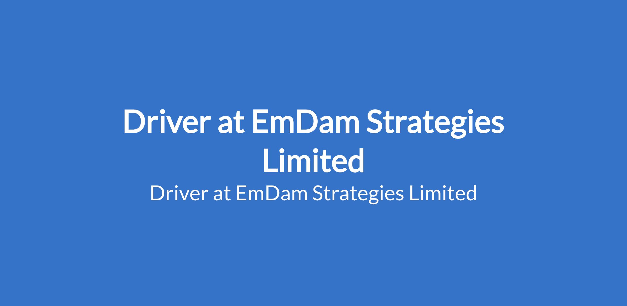 EmDam Strategies Limited is recruiting to fill the position of: Driver. The position is located in Lekki, Lagos State. Salary: N120,000 - N150,000 monthly. Interested candidates should possess a Valid driver's license with a minimum of 5 years professional experience driving executives or senior officials.