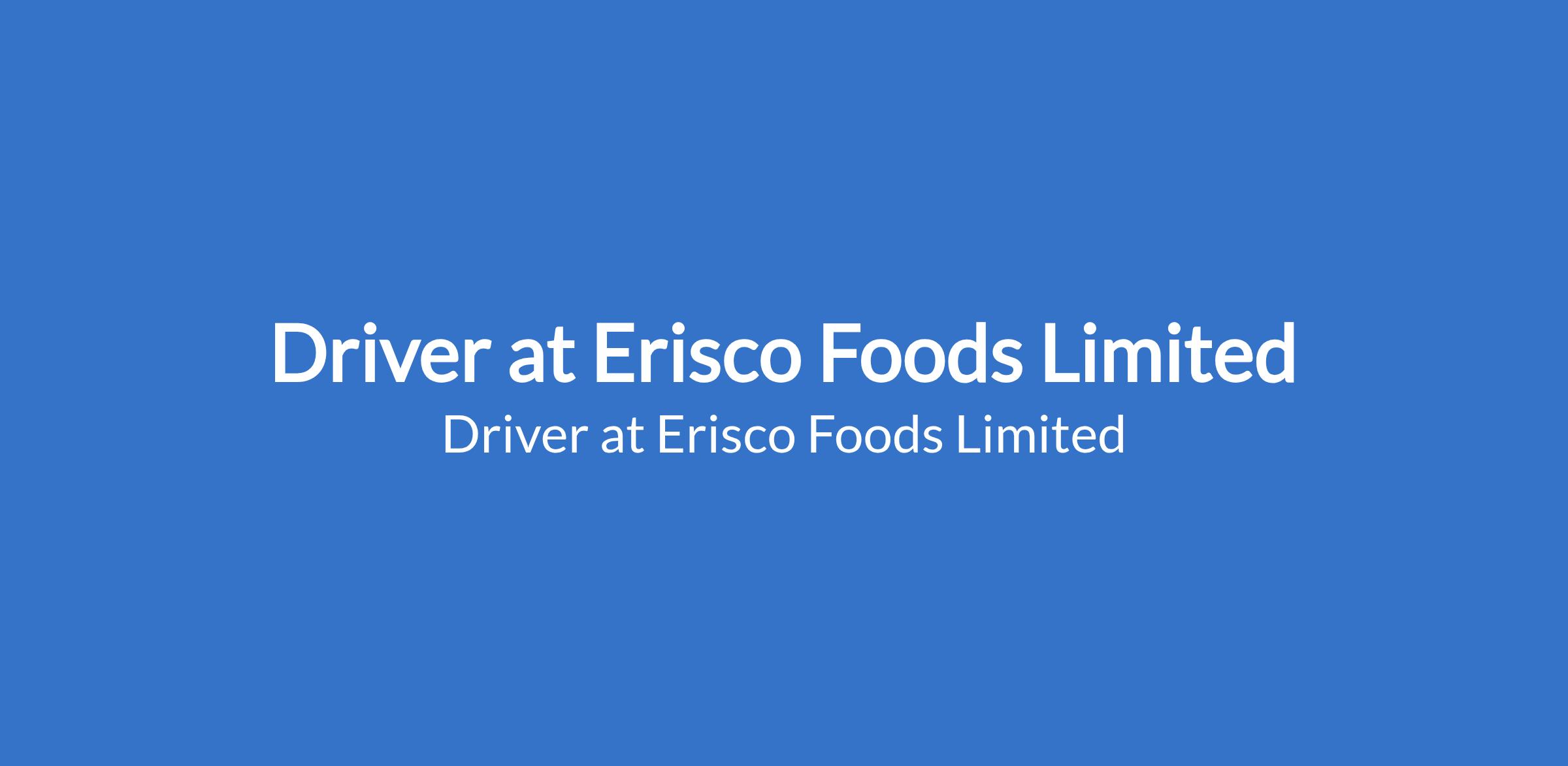 Erisco Foods Limited is recruiting to fill the position of: Driver. The position is located in Umuahia, Abia State. Interested candidates should possess an FSLC / SSCE / OND, NCE qualification; a valid driver's license with a minimum of 2 years of work experience as a driver.