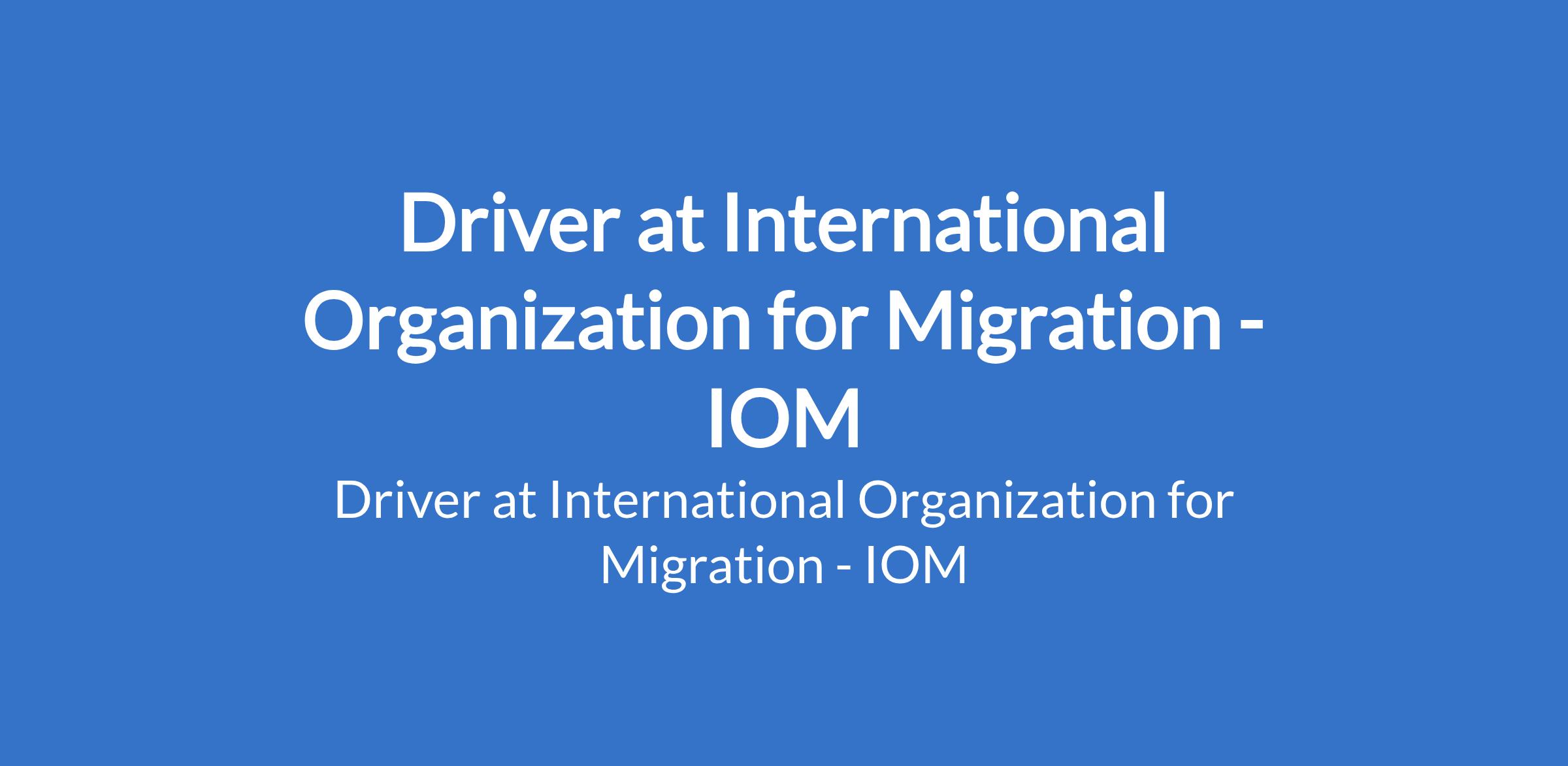 International Organization for Migration (IOM) is recruiting to fill the position of: Driver. The position is located in Lagos State. Interested candidates should possess a High School Degree / certificate with a minimum 2 years of relevant working experience or a Bachelors Degree from an accredited institution and a Valid national drivers license.