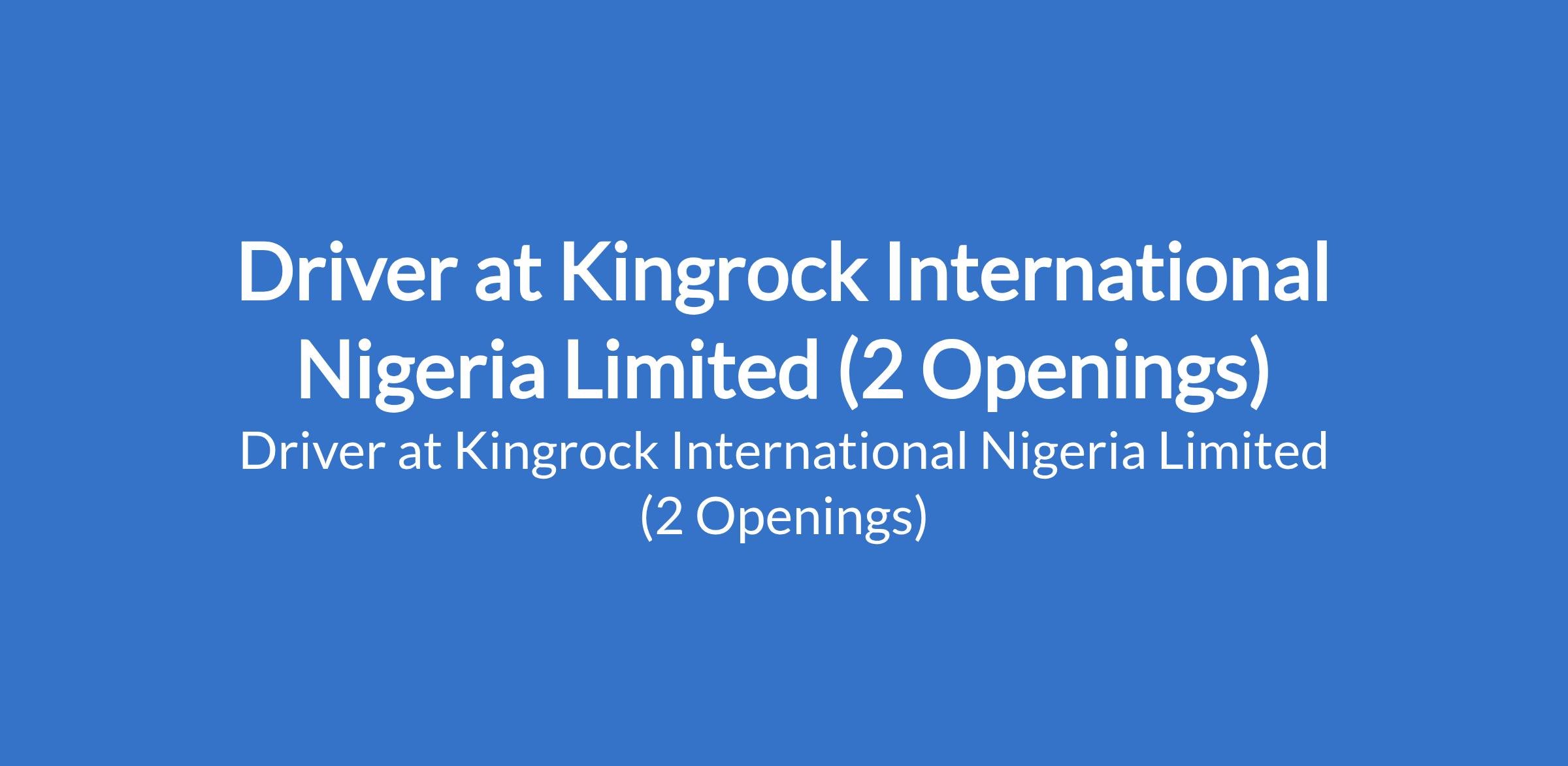 Kingrock International Nigeria Limited is recruiting to fill the position of: Driver. The position is located in Abuja (FCT). Salary: N100,000 monthly. Interested candidates should possess minimum of a Senior High School Diploma with a minimum of 2 years excellent driving working experience.