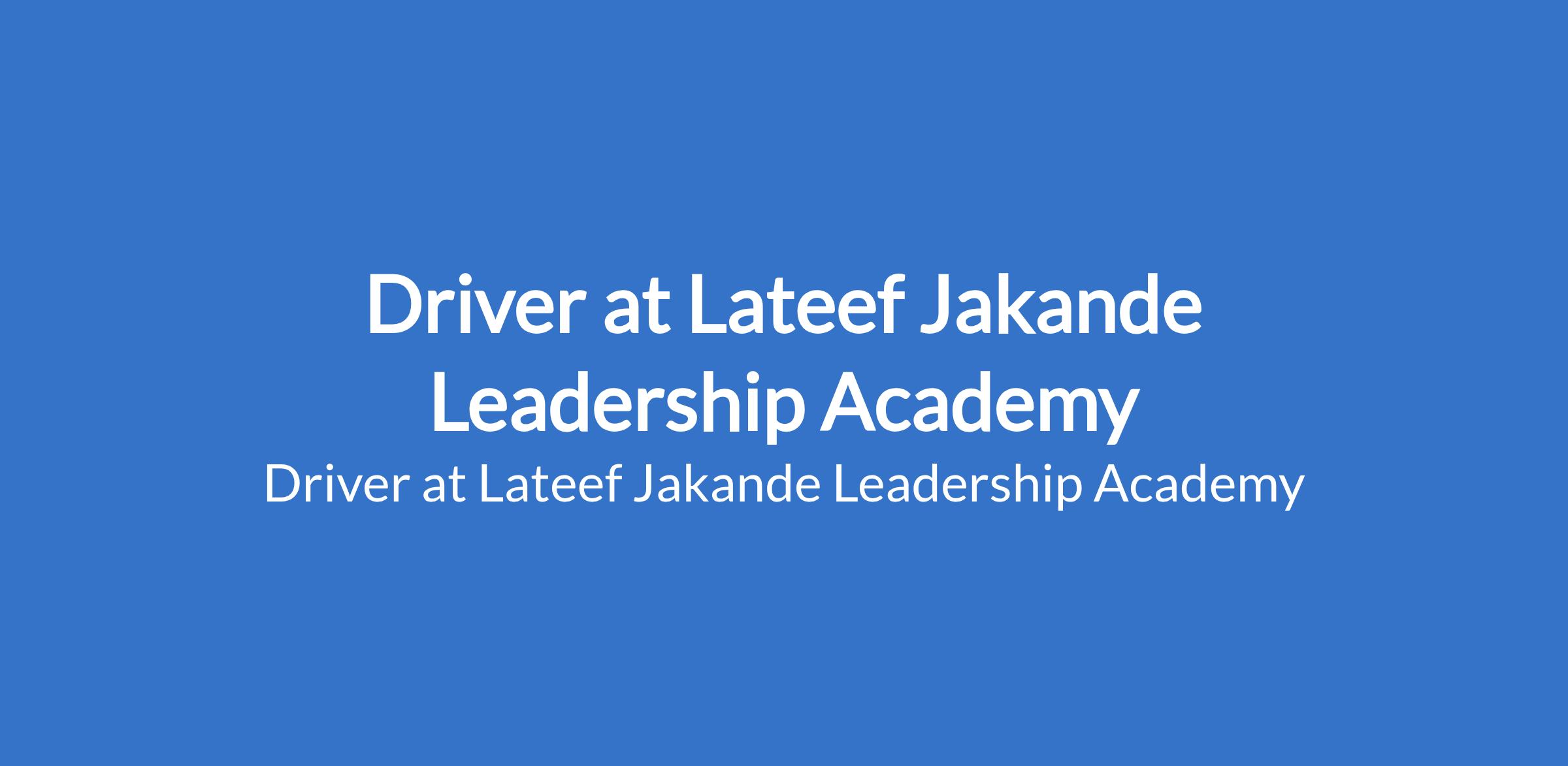 Lateef Jakande Leadership Academy is recruiting to fill the position of: Driver. The position is located in Lagos State. Interested candidates should possess minimum of SSCE or equivalent qualification, valid drivers license with a clean driving record and 3 - 5 years of professional driving experience (corporate or government setting preferred).