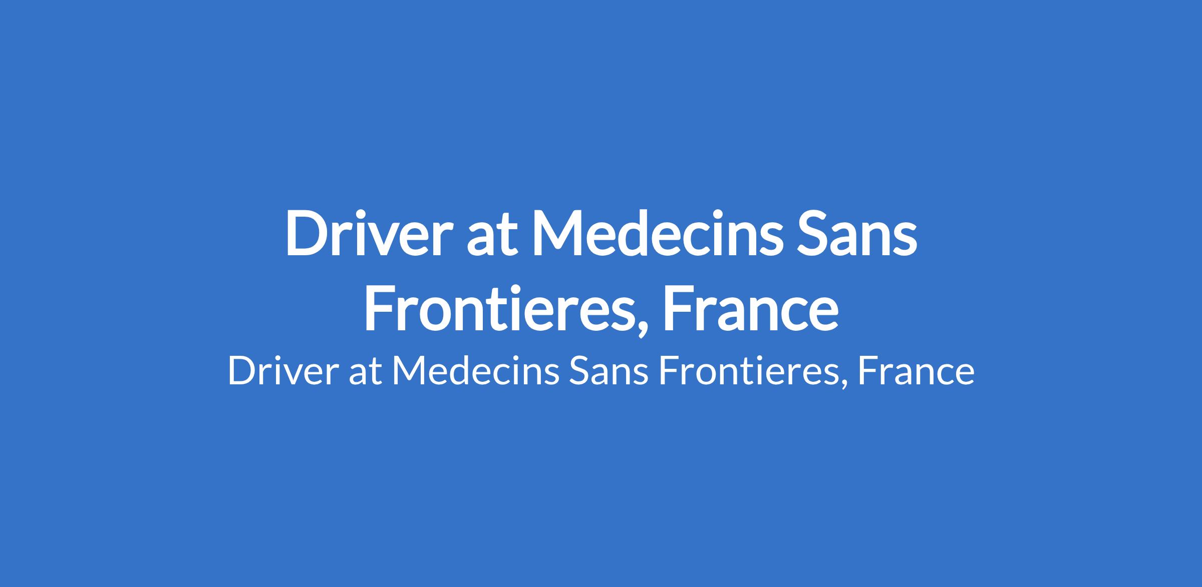 Driver at Medecins Sans Frontieres, France