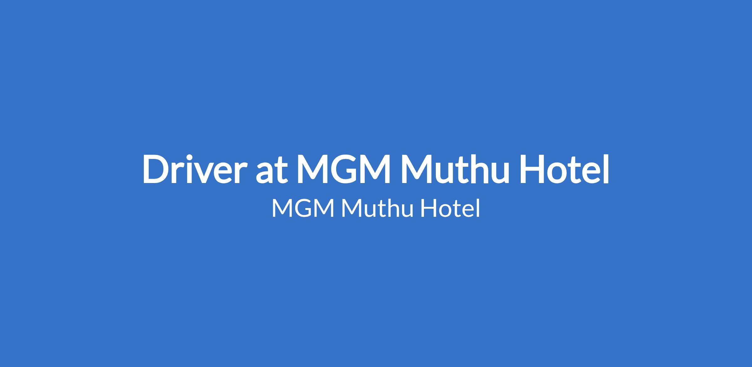Driver at MGM Muthu Hotel
