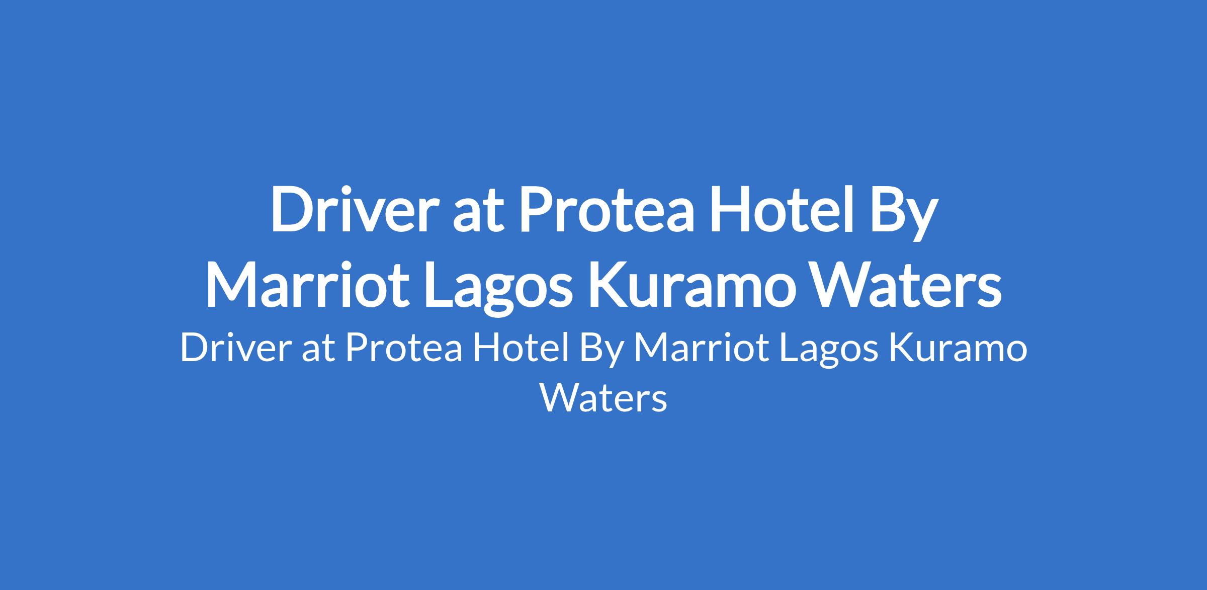 Protea Hotel By Marriot Lagos Kuramo Waters is recruiting to fill the position of: Driver. The position is located in Within Lekki, Lagos State. Interested candidates should possess a Valid drivers license with proven experience as a driver.