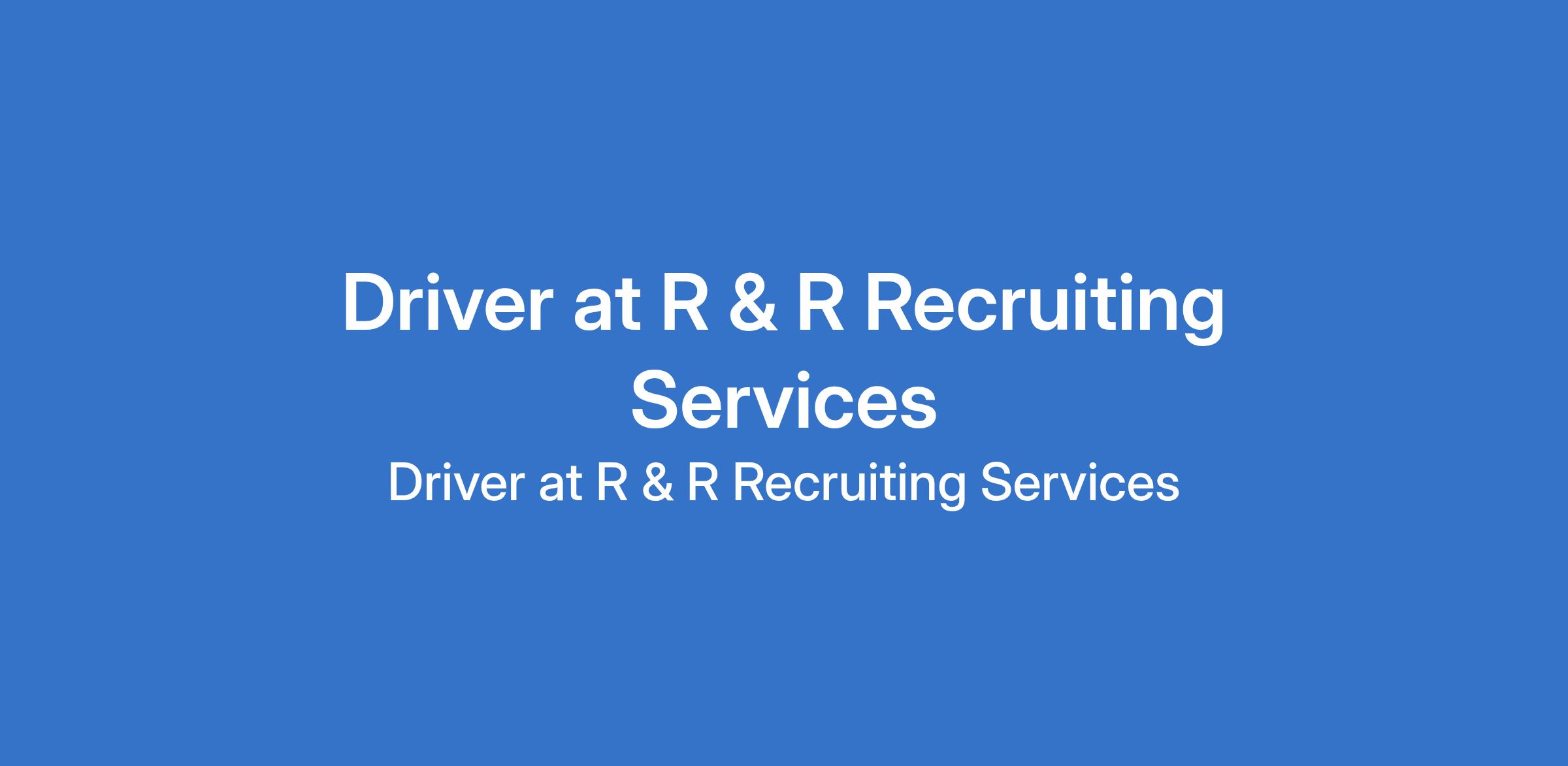 Driver at R & R Recruiting Services