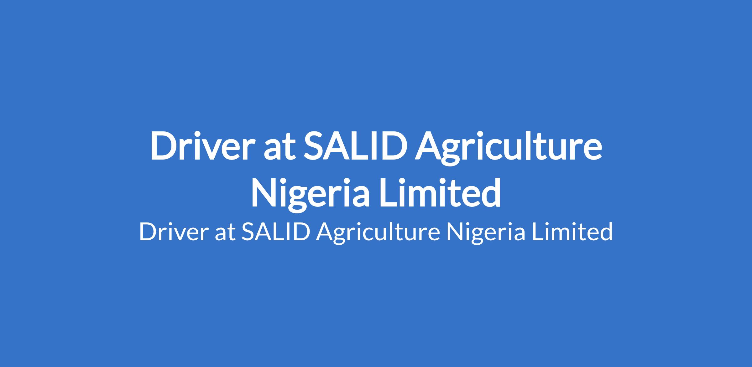 SALID Agriculture Nigeria Limited is recruiting to fill the position of: Driver. The position is located in Wuse, Abuja (FCT). Salary: N90,000 - N100,000 / Month. Interested candidates should possess minimum of a Senior High School Diploma, must have a valid driver's license and should be ready to work full-time, which will involve interstate travel and must be based in Abuja, preferably in proximity to Wuse Zone 2, with working knowledge of Abuja and the immediate surrounding environs.