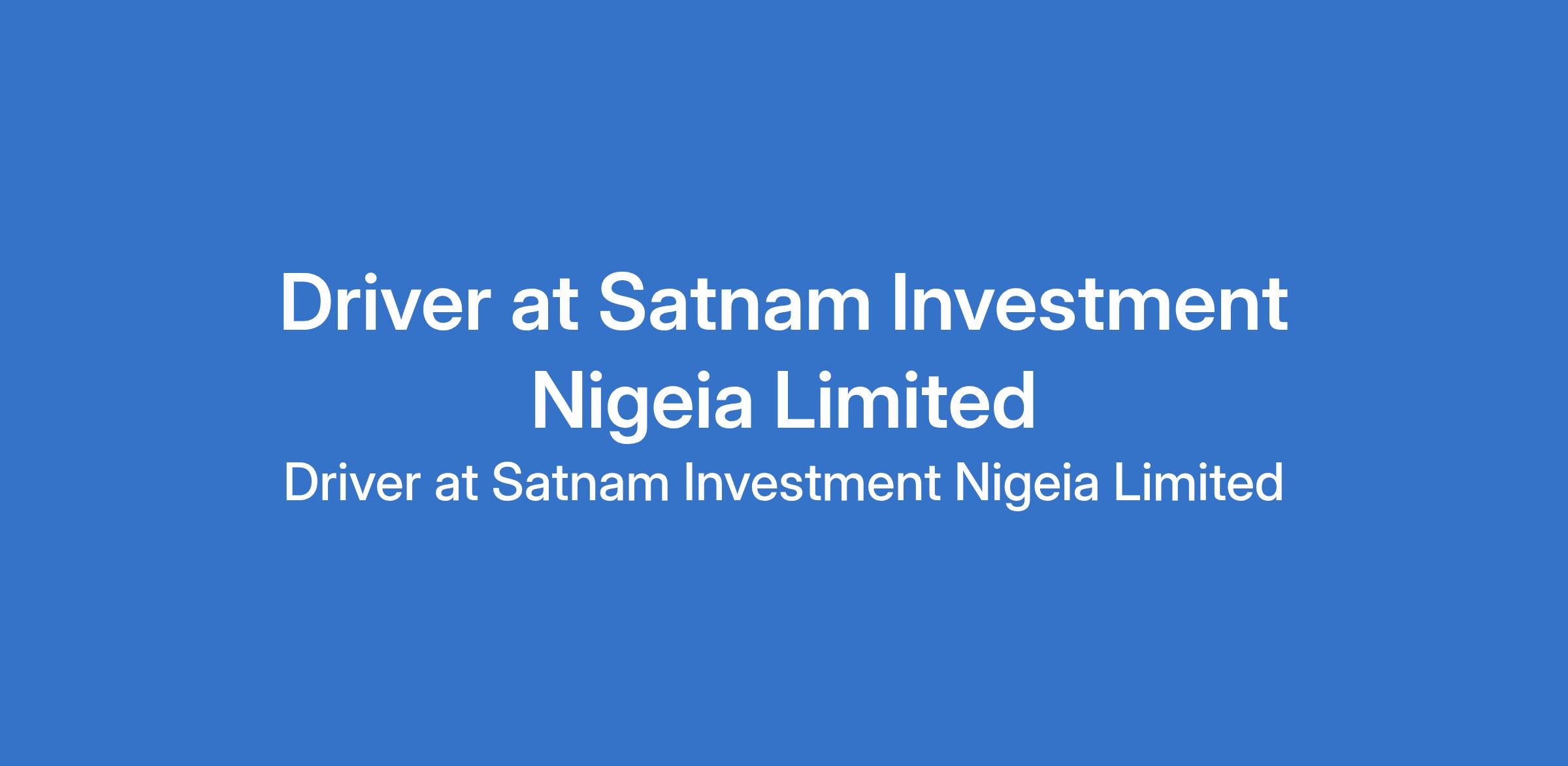 Satnam Investment Nigeia Limited is recruiting to fill the position of: Driver. The position is located in Surulere, Lagos State. Interested candidates should possess minimum qualification of an SSCE and a valid driver's license, a clean driving record, and relevant driving experience.