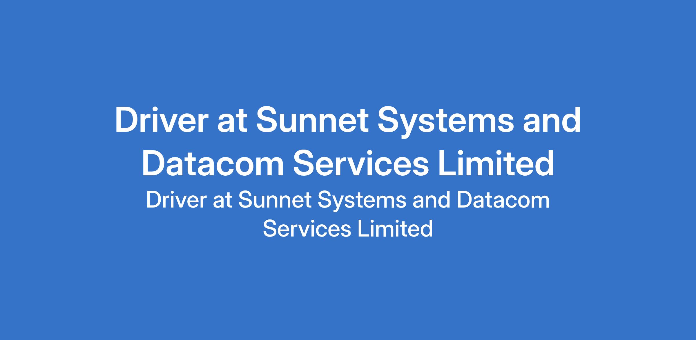 Sunnet Systems and Datacom Services Limited is recruiting to fill the position of: Driver. The position is located in Victoria Island, Lagos State. Salary: N100,000 monthly. Interested candidates should possess a Valid drivers license and a clean driving record with no major violations.