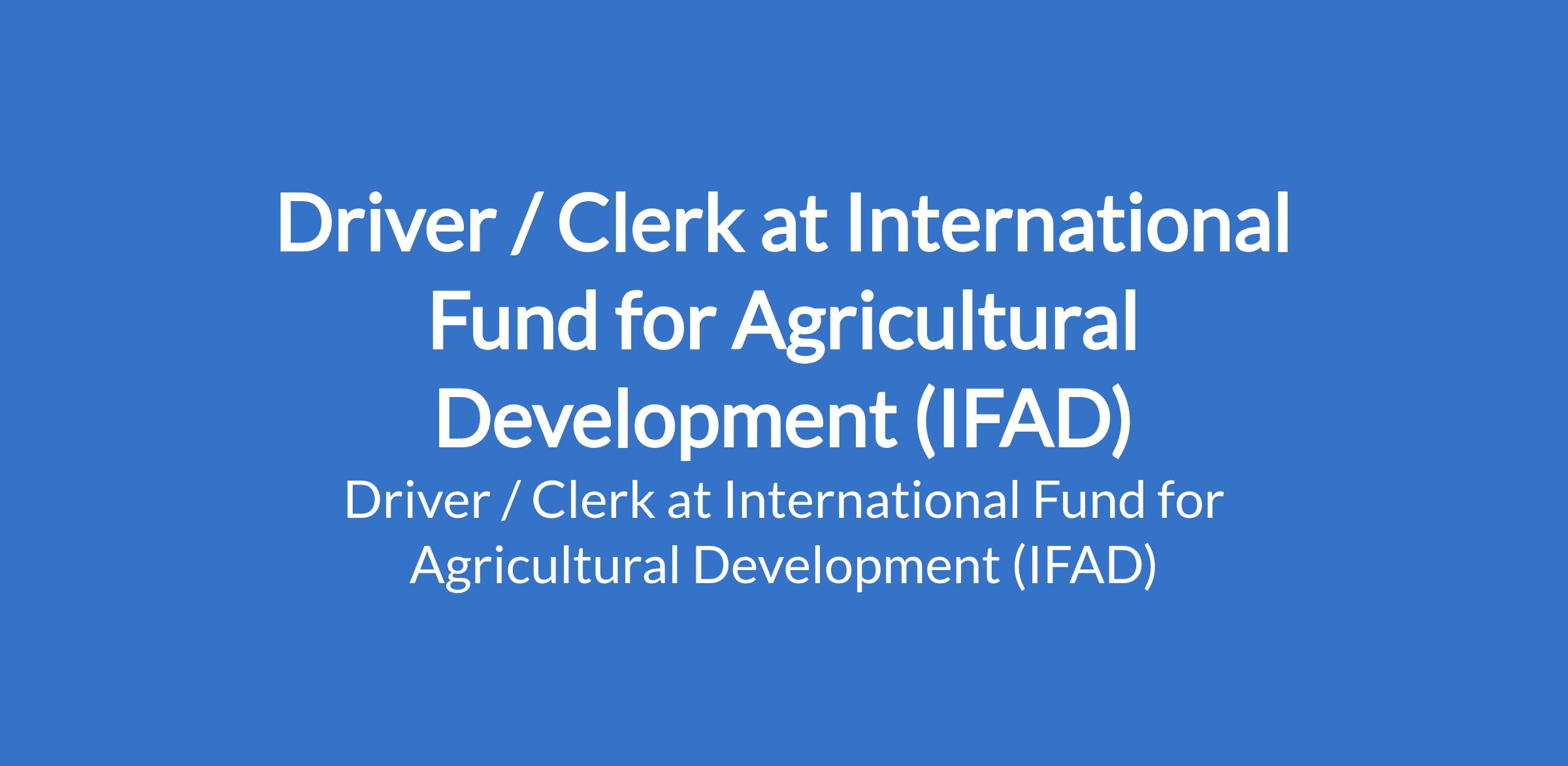 International Fund for Agricultural Development (IFAD) is recruiting to fill the position of: Driver / Clerk. The position is located in Abuja. Interested candidates should possess a High School Diploma with at least two (2) years of progressively responsible experience in administration and working as a Driver.