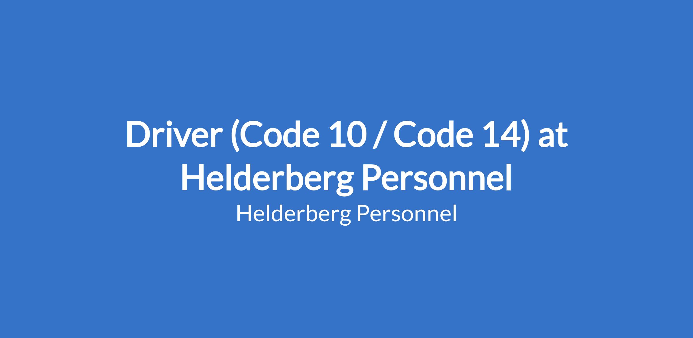 The Driver (Code 10 / Code 14) is responsible for the safe, timely, and efficient transportation of goods, equipment, or passengers in accordance with company procedures and road traffic regulations.