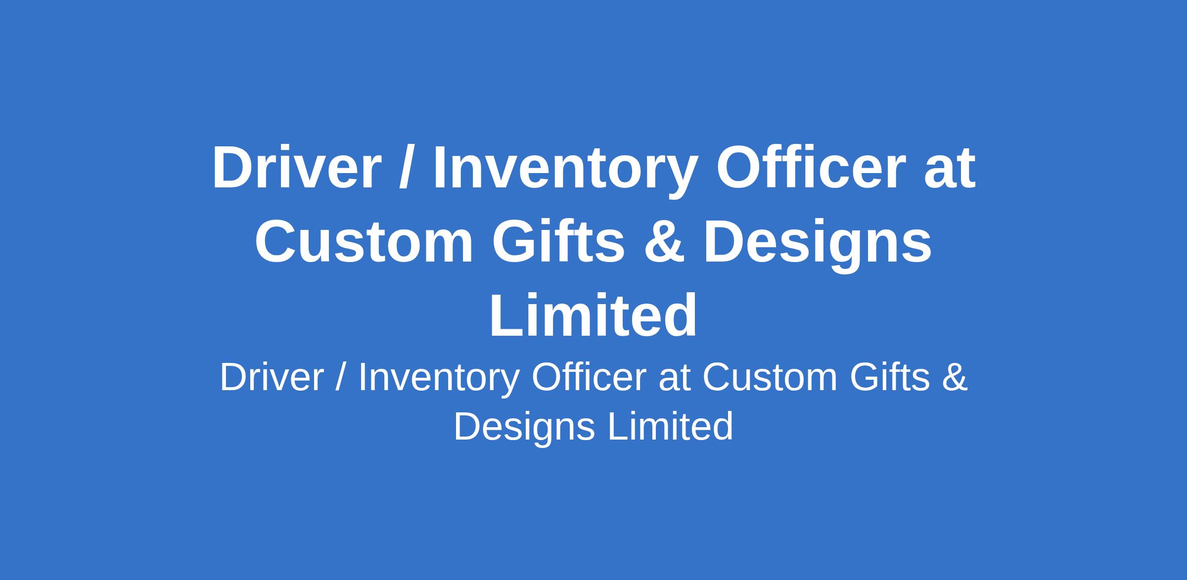Custom Gifts & Designs Limited is recruiting to fill the position of: Driver / Inventory Officer. The position is located in Lagos State. Salary: N150,000 per month. Interested candidates should possess an SSCE (Senior Secondary Certificate of Education) with a valid drivers License.