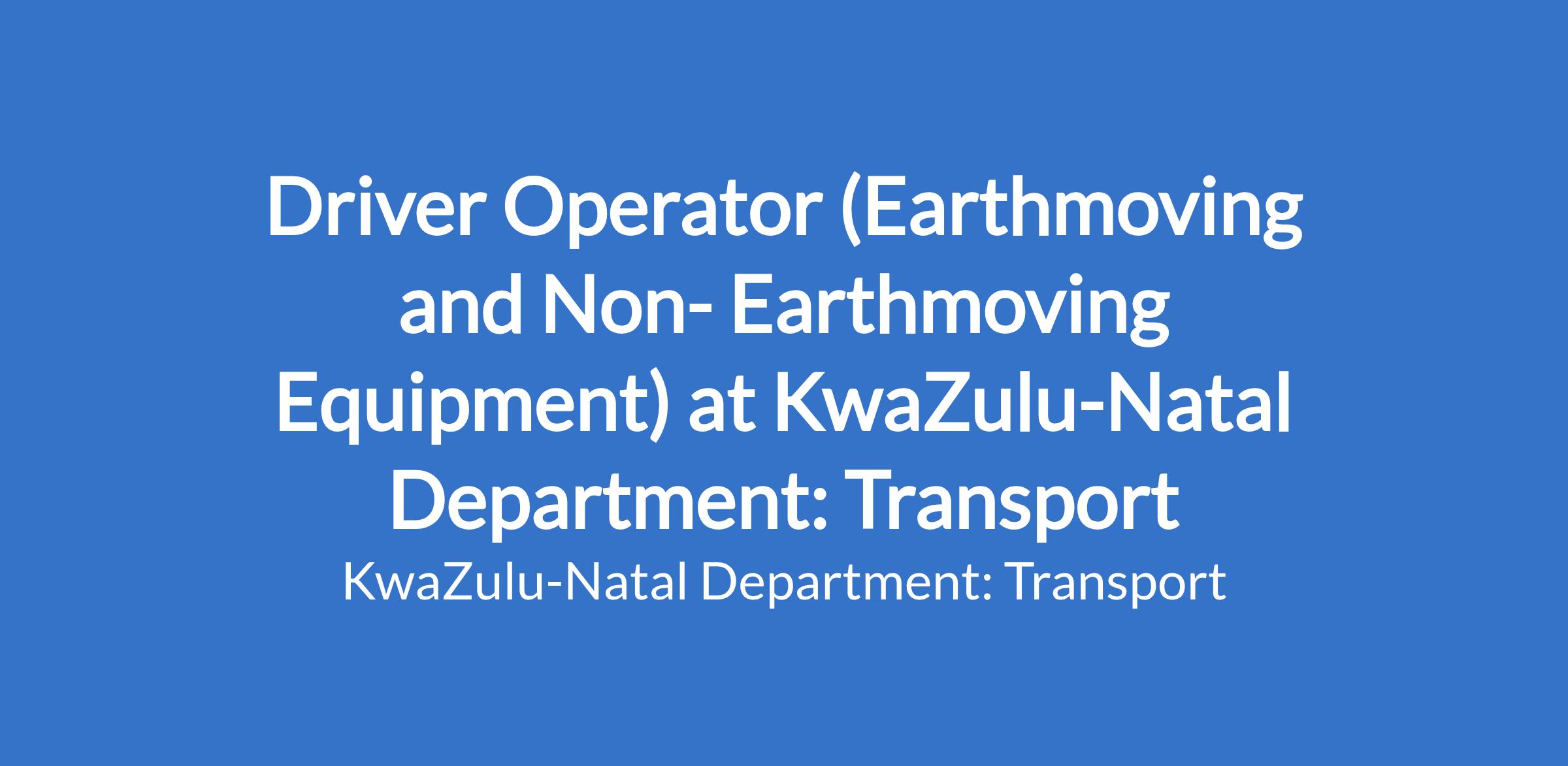 Grade 10 certificate (NQF level 2); plus a valid Driver's Licence Code EC with PrDP and Operating Certificate / Departmental Competency Pink card for specialised equipment; plus Five (5) years' driving and operating specialized equipment experience