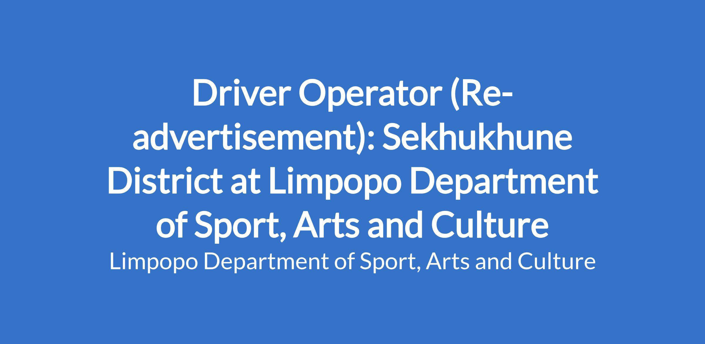Driver Operator (Re-advertisement): Sekhukhune District at Limpopo Department of Sport, Arts and Culture
