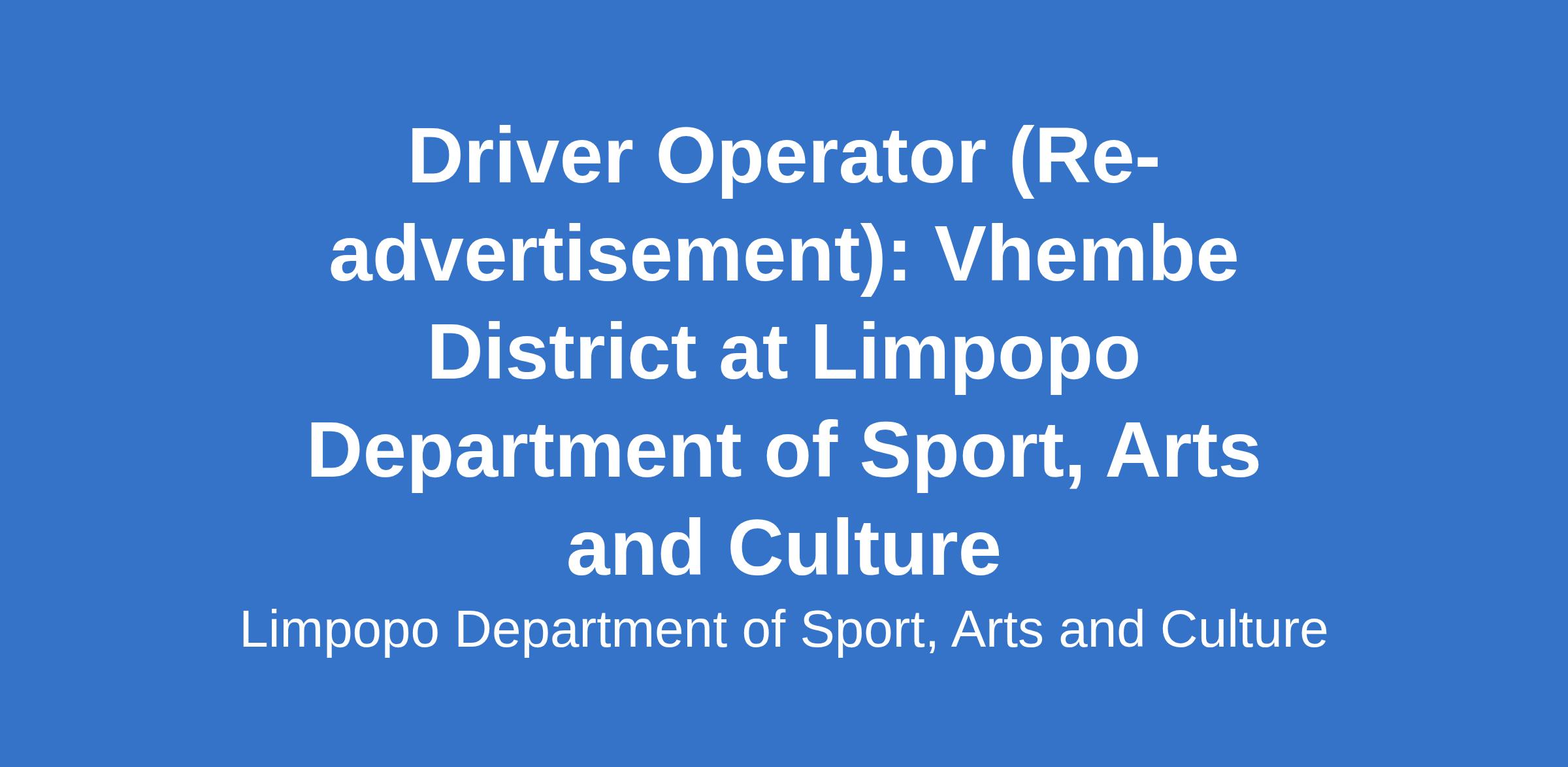 Driver Operator (Re-advertisement): Vhembe District at Limpopo Department of Sport, Arts and Culture