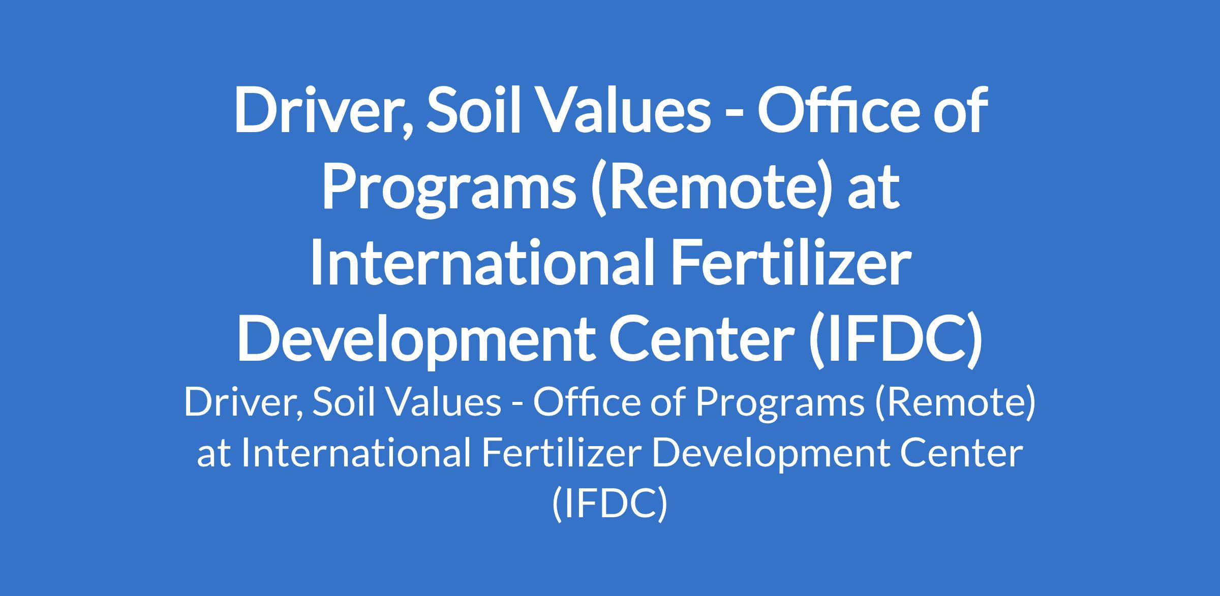 International Fertilizer Development Center (IFDC) is recruiting to fill the position of: Driver, Soil Values - Office of Programs. This is a Remote. Interested candidates should possess a minimum of an O'level (WASSCE/NECO/SSCE level) certificate, a minimum of a class C driving license with at least 5 years of experience.