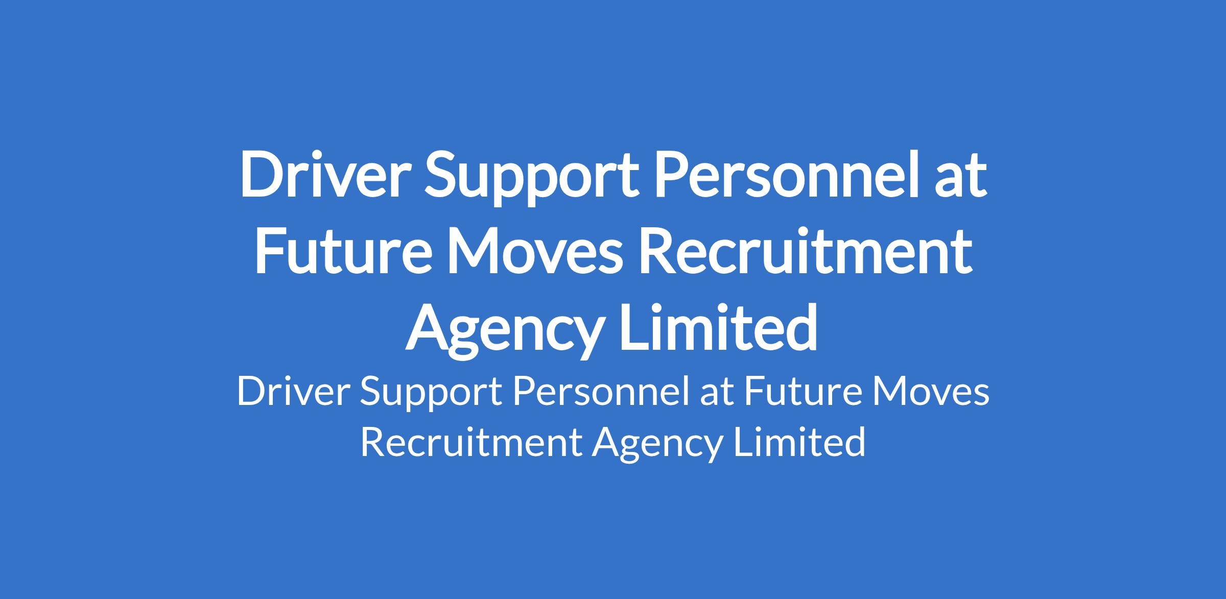 Future Moves Recruitment Agency Limited is recruiting to fill the position of: Driver Support Personnel. The position is located in Gbagada, Lagos State. Salary: N80,000 per month. Interested candidates should possess a minimum of an SSCE qualification.