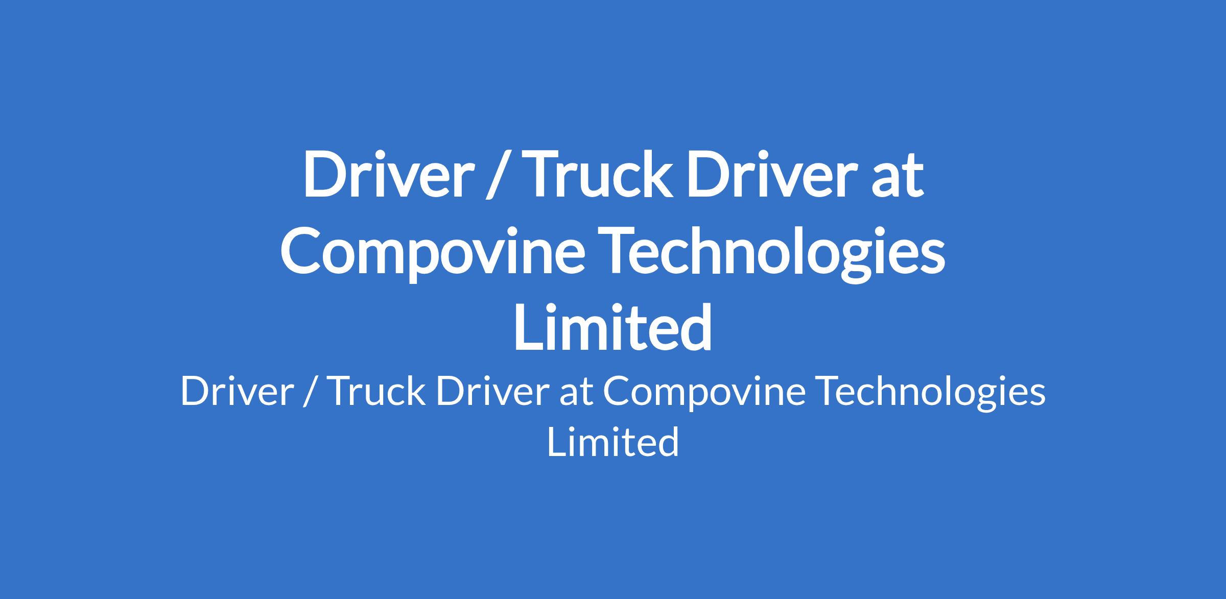 Driver / Truck Driver at Compovine Technologies Limited