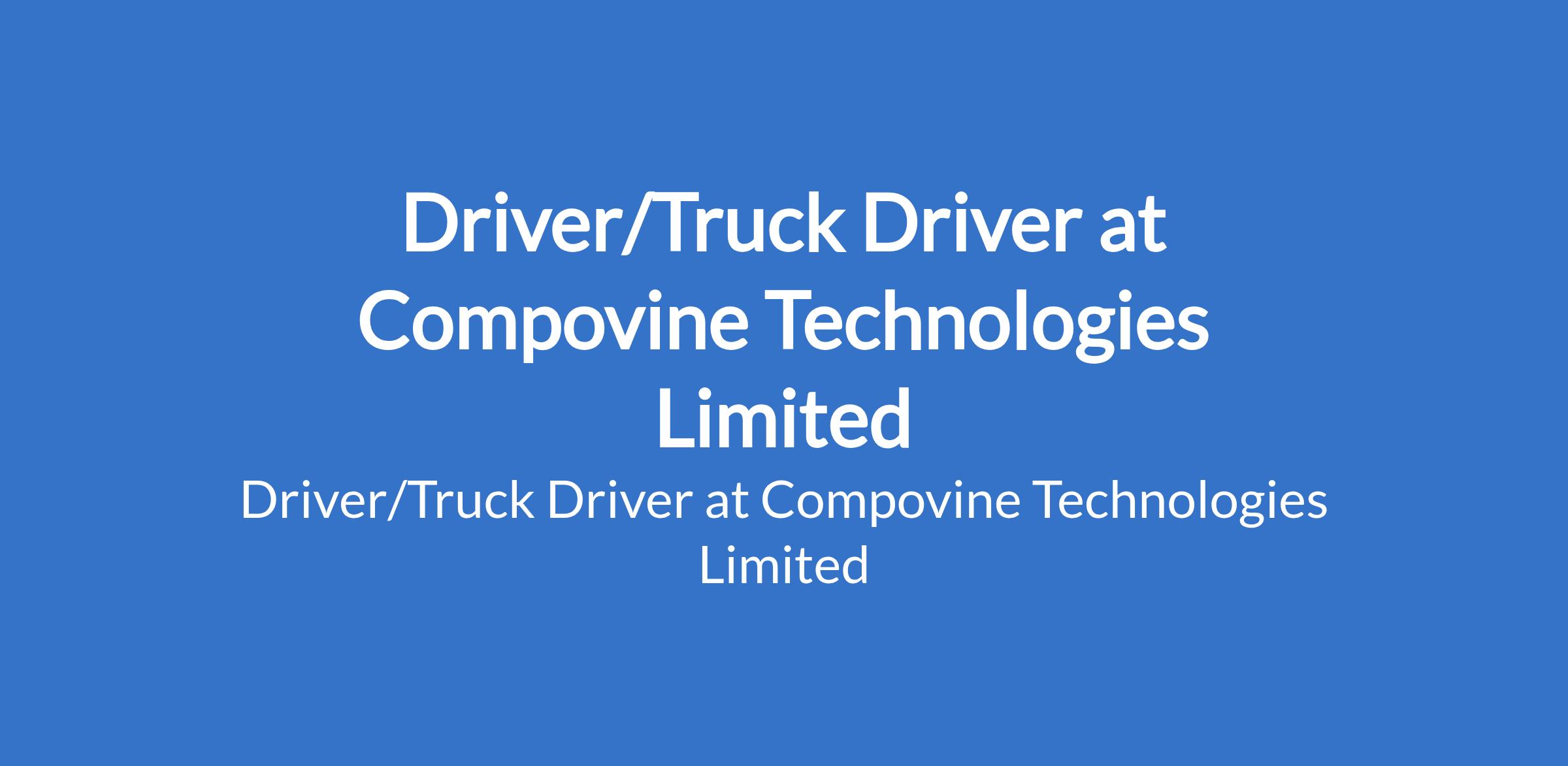 Compovine Technologies Limited is recruiting to fill the position of: Driver/Truck Driver. The position is located in Ikeja, Lagos State. Salary: N100,000 - N150,000 per month. Interested candidates should possess relevant qualifications with 3 - 10 years of experience.