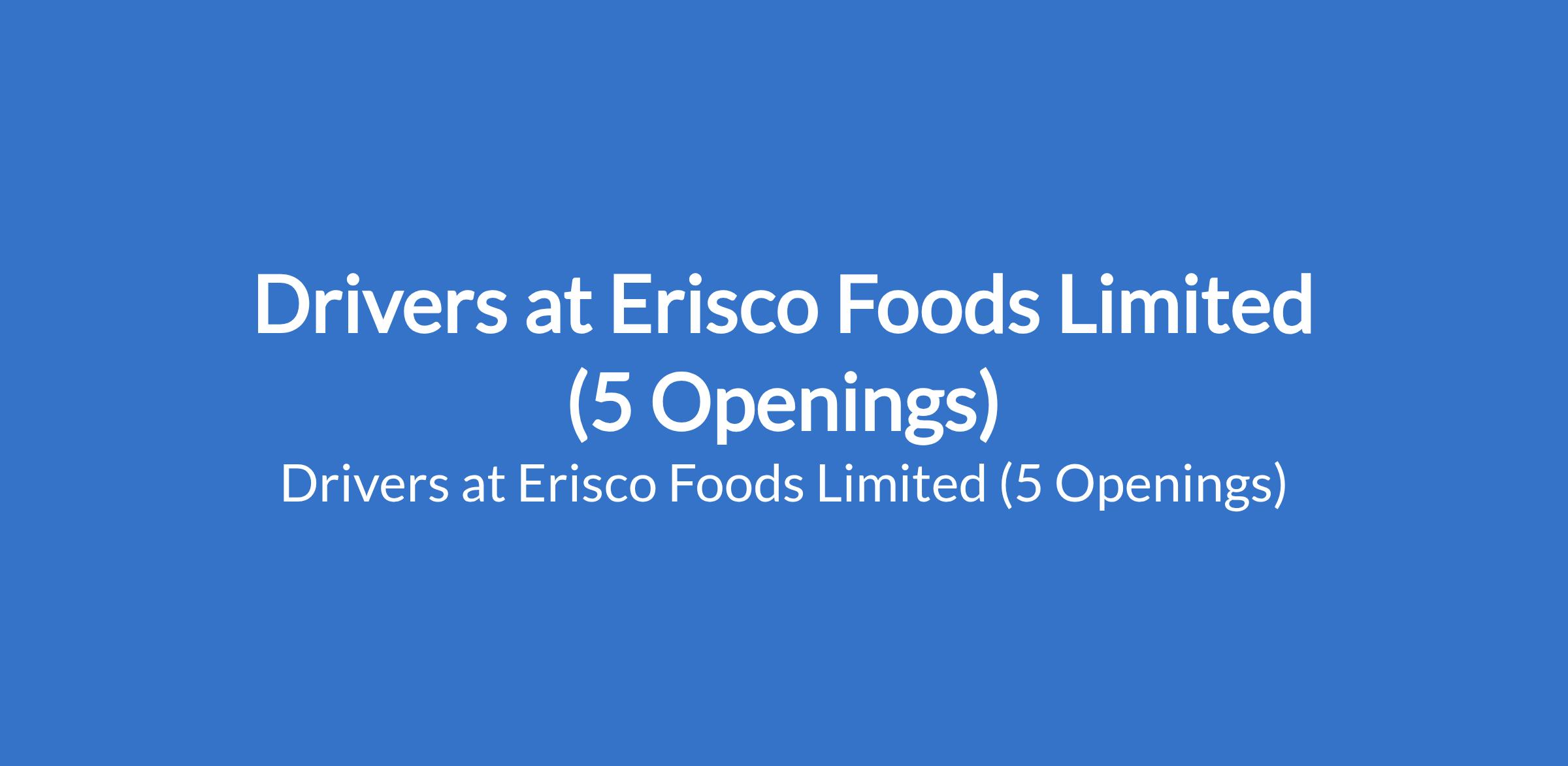 Erisco Foods Limited is recruiting to fill the position of: Drivers . The position is located in Benin - Edo, Nsukka - Enugu, Bayelsa - Bayelsa, Ajah - Lagos and Umuahia - Abia States. Interested candidates should possess an FSLC / SSCE / OND, NCE qualification with a minimum of 2 years of work experience as a driver and must be able to drive both automatic and manual vehicles. Candidate must have a valid driver's license, and must reside in Umuahia, Benin, Bayelsa, Ajah or Nsukka.