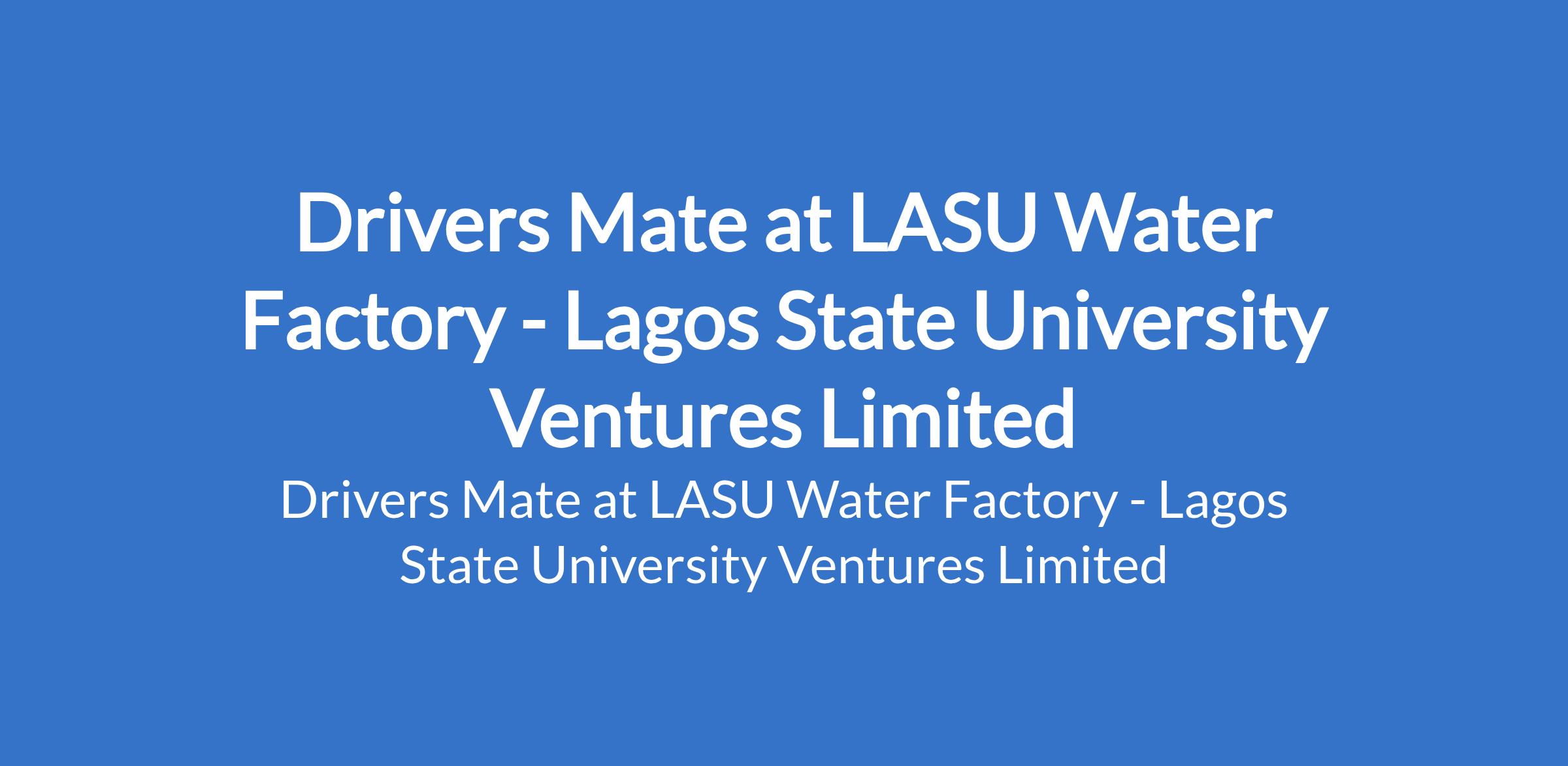 LASU Water Factory under the Lagos State University Ventures Limited invites applications from suitable candidates to fill the position of: Drivers Mate. The position is located in Ojo, Lagos State. Interested candidates should possess a minimum of SSCE / NECO certificate.