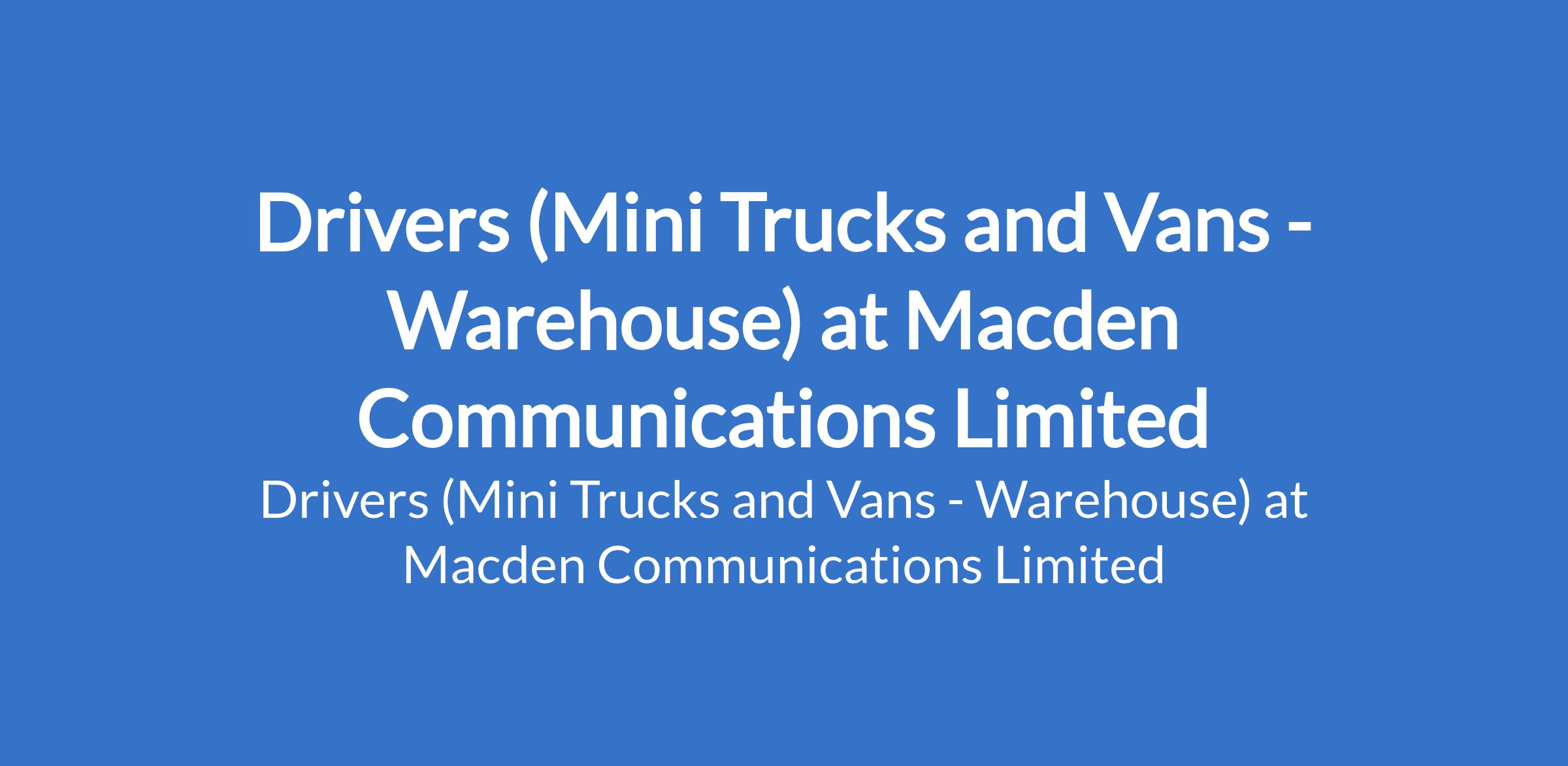 Macden Communications Limited is recruiting to fill the position of: Driver (Mini Trucks and Vans - Warehouse). The position is located in Ogba, Lagos State. Salary: N95,000 - N100,000 per month. Interested candidates must have a valid Driver's license, must have a good knowledge of Lagos and Ogun state roads, must be able to drive 6 tyres trucks with 3 - 5 years of experience and applicants must reside within Ogba axis, Agege axis, Ikeja axis, Ojodu axis, Berger axis, Ojota axis, Ketu axis and its surrounding environments.