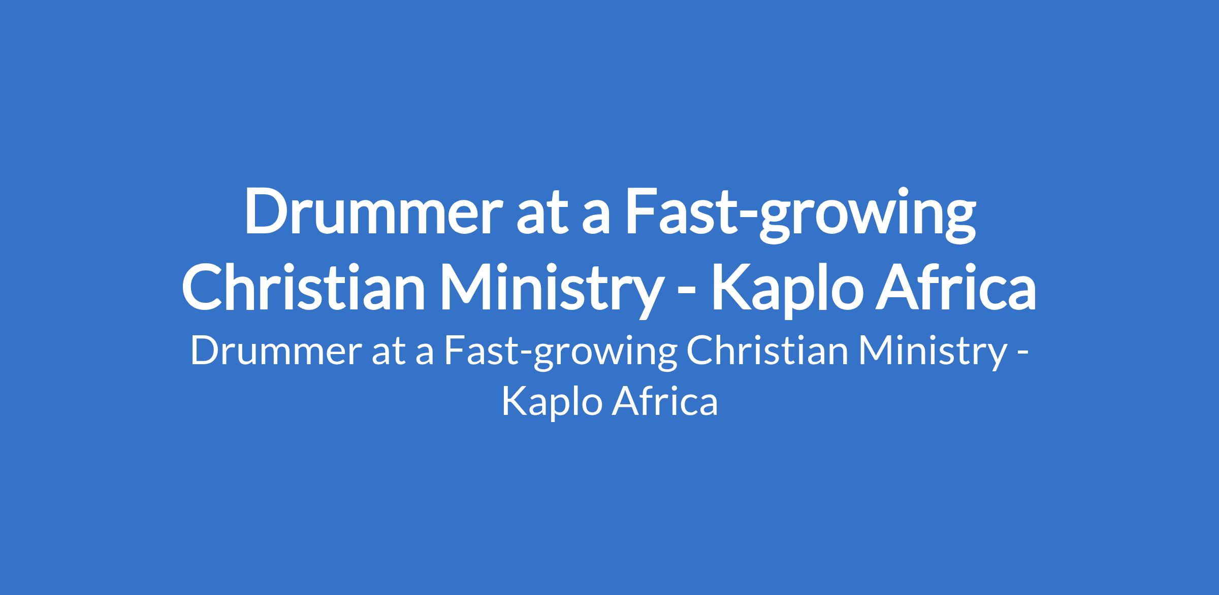 Kaplo Africa - Our client, a fast-growing Christian ministry is recruiting to fill the position of: Drummer. The position is located in Ajegunle, Lagos State. Salary: N30,000 monthly. The ideal candidate will carry both musical skill and a heart for ministry, creating an atmosphere that draws people into Gods presence. Interested candidates should possess relevant qualifications.