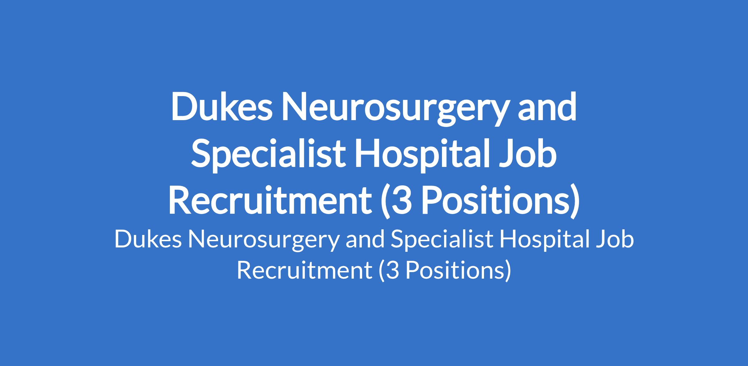 Dukes Neurosurgery and Specialist Hospital Job Recruitment (3 Positions)