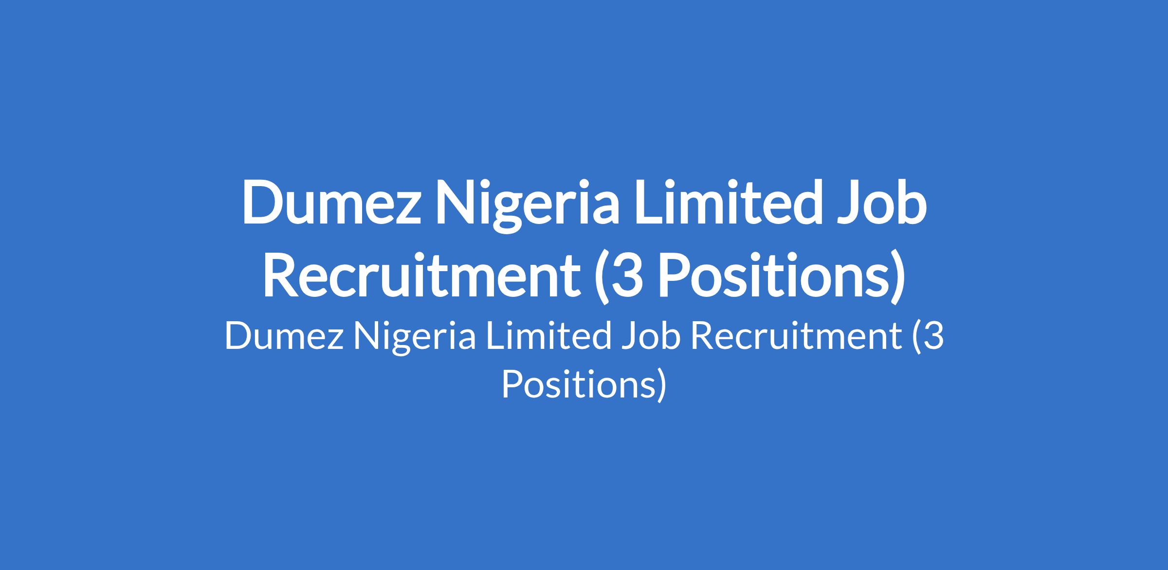 Dumez Nigeria Limited Job Recruitment (3 Positions)